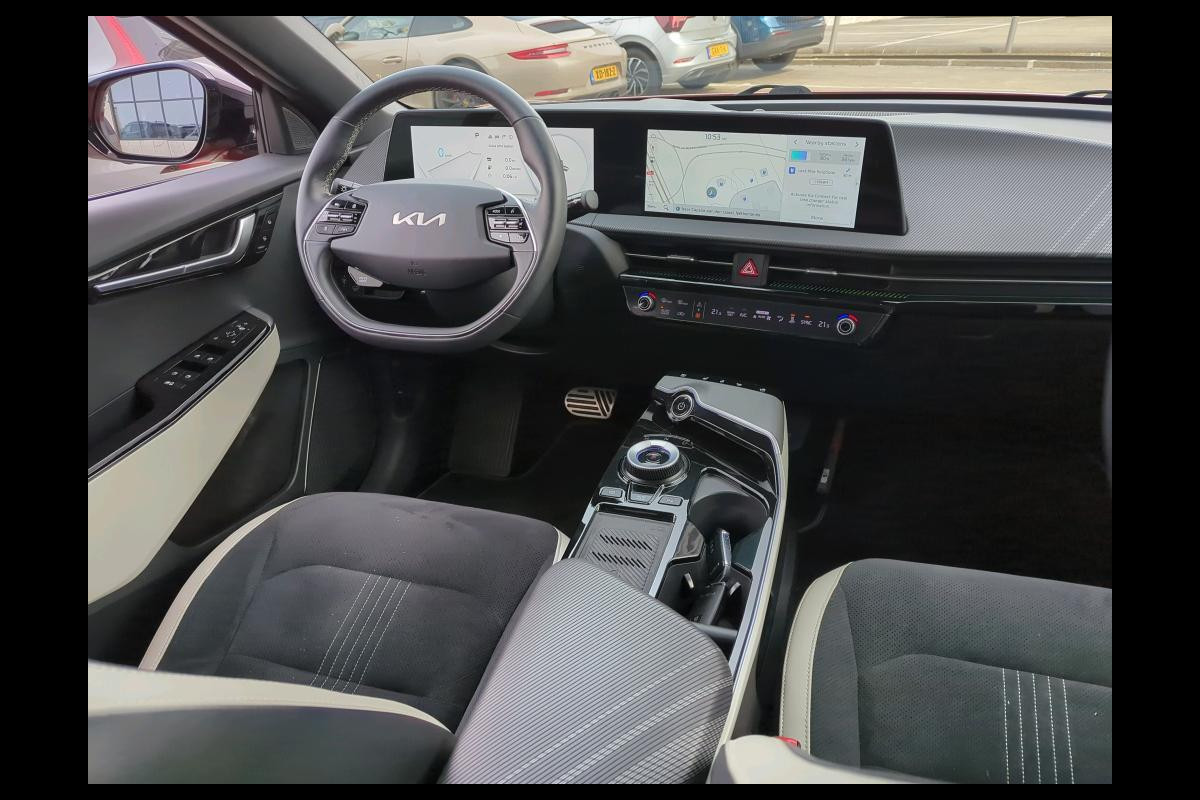 Het maakt niet uit of u binnen of buiten de stad rijdt. Het rijbereik van deze elektrische Kia EV6 biedt u alle vrijheid om te gaan en te staan waar u wilt. Nooit meer naar de pomp! De elektromotor opladen en rijden maar! In weer een wind een cabrio-gevoel? Daarvoor zorgt het elektrisch bediende glazen panorama dak. En het moeiteloos in- en uitladen is te danken aan de elektrisch bedienbare achterklep. U zult absoluut de luxe waarderen van de stoelverwarming, verwarmbare achterbank, en het verwarmbare stuur dat inbegrepen is in dit voertuig. De matrix LED-verlichting in de koplampen bestaat uit een raster van lichtpunten met maximale opbrengst. Bij tegenliggers past het systeem precies die punten aan die hinderlijk kunnen zijn. U behoudt maximaal zicht! Bij de zeer complete uitrusting van deze auto behoren ook 19 inch lichtmetalen velgen, warmtewerend glas, in delen neerklapbare achterbank, LED-achterlichten en verstelbare lendensteunen.