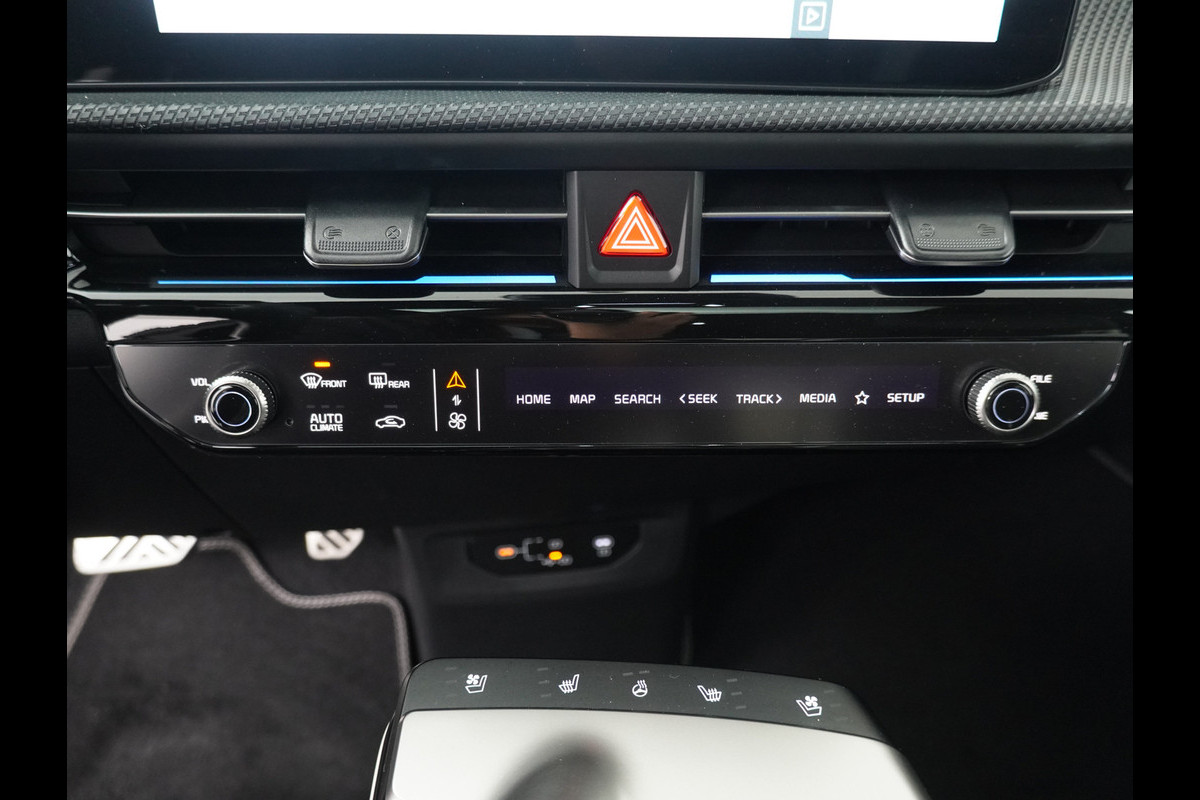 Alle benodigde informatie helder in beeld: het digitale dashboard is een geweldige rijhulp. De kracht van de 360 graden camera op deze auto resulteert in optimale zichtbaarheid en veiligheid. Adaptive cruise control is veilig en comfortabel. De snelheidsregelaar houdt automatisch afstand tot het voertuig dat voor u rijdt. Rijden-stilstaan, rijden-stilstaan. Niks is irritanter en vermoeiender dan filerijden. Daar heeft deze Kia EV6 een oplossing voor: de file assistent, die met radarmeting permanent het tempo aanpast op de voorligger. Zelfs als die stopt. U weet altijd hoe de auto eraan toe is dankzij Connected Services. Ook handig voor de garage en de wegenwacht. Even de app uitlezen en klaar! De uitrusting van deze Kia is met dashboard met spraakbediening, premium audiosysteem, full map navigatiesysteem, kruisend verkeer detectie, electronic climate control en draadloos opladen behoorlijk compleet.