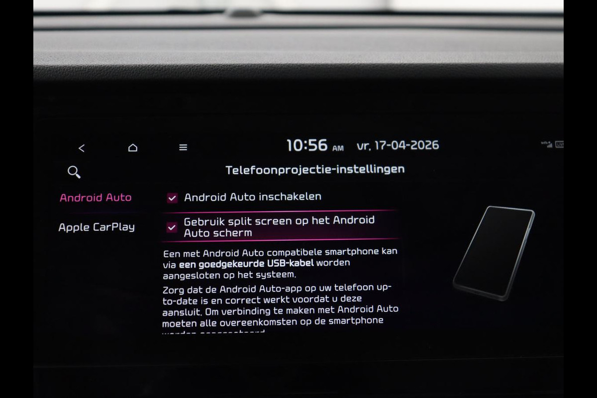 Kommaar-kommaar-kommaar, aldus de achteruitrijcamera. Iedere centimeter vrije ruimte komt haarscherp in beeld. Schadevrij inparkeren maar! Als u de adaptive cruise control inschakelt, regelt de auto zelf de snelheid en de afstand tot de auto voor u. Laat u onderweg niet afleiden, de bediening van het audiosysteem en ook het full map navigatiesysteem gaat met knoppen op het stuur. Natuurlijk is de audio-installatie voorzien van DAB-ontvangst. De automatische airconditioning zorgt voor een prettige binnentemperatuur. Om de veiligheid onderweg te verhogen, heeft deze Kia zowel een automatisch inschakelbare verlichting als een regensensor aan boord, zodat hij zelf de verlichting en de ruitenwissers kan inschakelen. Ook sportstuur met schakelpaddels, automatisch dimmende binnenspiegel, centrale deurvergrendeling met afstandsbediening, bagage afdekhoes en lederen versnellingspook zijn aan boord.