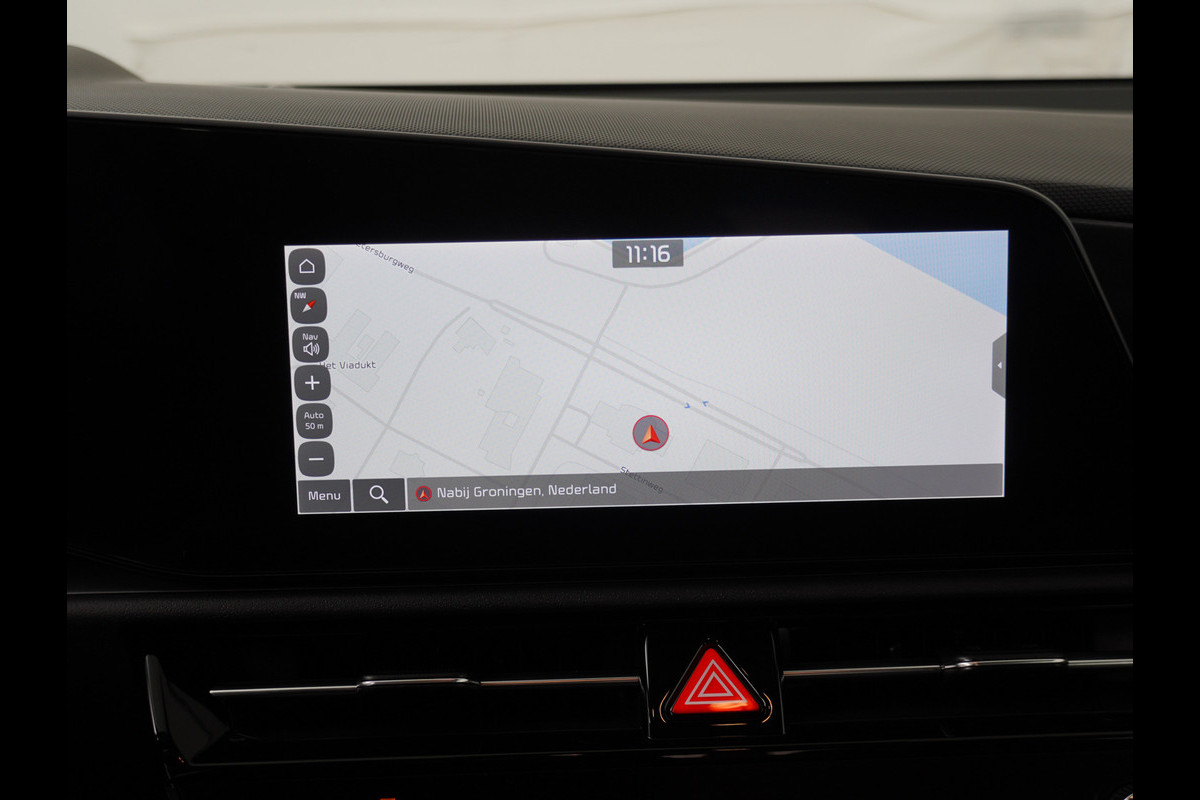 Snelheid, brandstofinfo, noem maar op. Het digitale dashboard houdt u permanent op de hoogte. Goed en overzichtelijk. De achteruitrijcamera brengt precies in zicht wat zich achter u bevindt en toont een glashelder beeld op hoge resolutie. Een geluidssignaal waarschuwt hoeveel ruimte u nog heeft. Met adaptive cruise control houdt deze auto automatisch afstand tot uw voorligger. Rijden-stilstaan, rijden-stilstaan. Niks is irritanter en vermoeiender dan filerijden. Daar heeft deze Kia Niro EV een oplossing voor: de file assistent, die met radarmeting permanent het tempo aanpast op de voorligger. Zelfs als die stopt. Slimme spraakbesturing herkent gesproken opdrachten en voert ze uit. Wat u ook in deze auto kunt vinden zijn connected drive services, full map navigatiesysteem, automatische airconditioning, schakelpaddles aan het stuur, DAB ontvangst en regensensor.