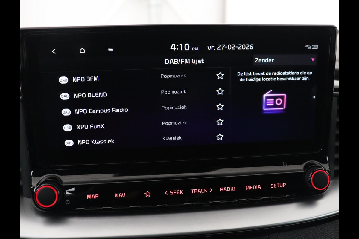 Over het digitale dashboard is goed nagedacht. Alle belangrijke functies binnen en buiten in één oogopslag. De achteruitrijcamera brengt precies in zicht wat zich achter u bevindt en toont een glashelder beeld op hoge resolutie. Een geluidssignaal waarschuwt hoeveel ruimte u nog heeft. Ingericht op Connected Services, voor een nog veiligere en comfortabelere rit. Met spraakbediening of de knoppen op het stuur regelt u het audiosysteem en het full map navigatiesysteem, terwijl u uw blik op de weg gericht houdt. De audio-installatie biedt daarbij glasheldere ontvangst dankzij DAB-ontvangst. Het spreekt voor zich dat een auto als deze ook van automatische airconditioning is voorzien. Ook is de Kia uitgerust met: regensensor, cruise control, keyless entry en automatisch dimmende binnenspiegel.