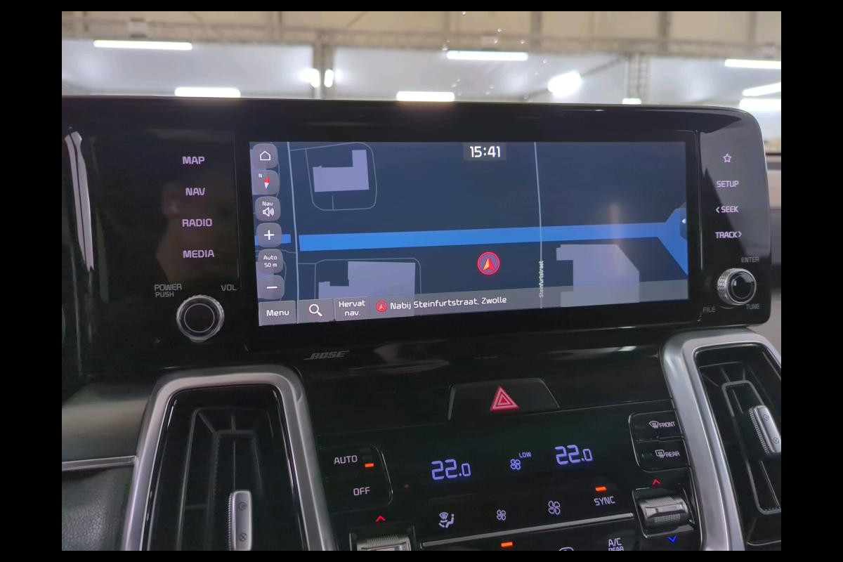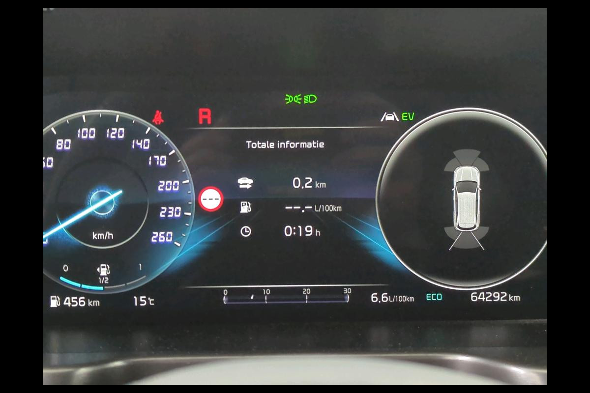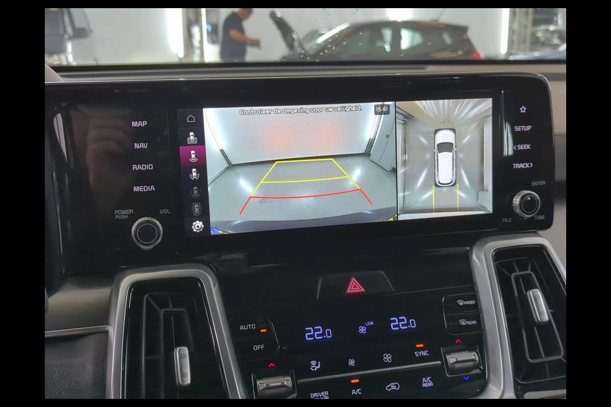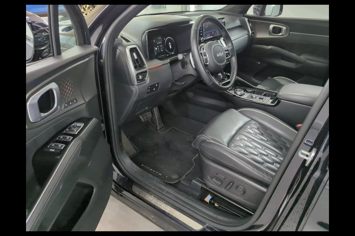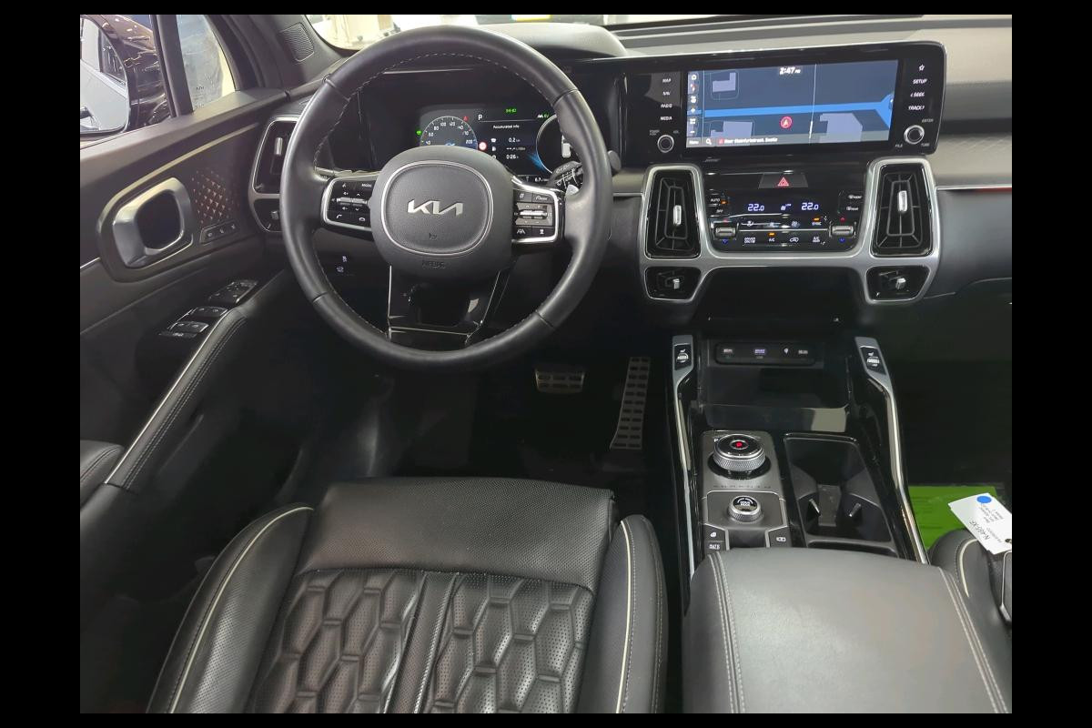 Een cockpit, een informatiecentrum... Wat is de cabine eigenlijk niet? Dankzij het digitale dashboard bent u van alles op de hoogte. Door het combineren van beelden van vier camera's, biedt de 360 graden camera een naadloos en gedetailleerd beeld van de hele omgeving rondom deze auto. Adaptive cruise control houdt de ingestelde snelheid vast en houdt automatisch afstand tot uw voorligger. Rijden-stilstaan, rijden-stilstaan. Niks is irritanter en vermoeiender dan filerijden. Daar heeft deze Kia Sorento een oplossing voor: de file assistent, die met radarmeting permanent het tempo aanpast op de voorligger. Zelfs als die stopt. Net als een smartphone of een slimme speaker kunt u deze auto bedienen met stemcommando's. Ook connected drive services, premium audiosysteem, full map navigatiesysteem, kruisend verkeer detectie, electronic climate control en schakelpaddles aan het stuur zijn aan boord.