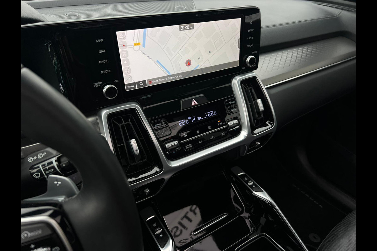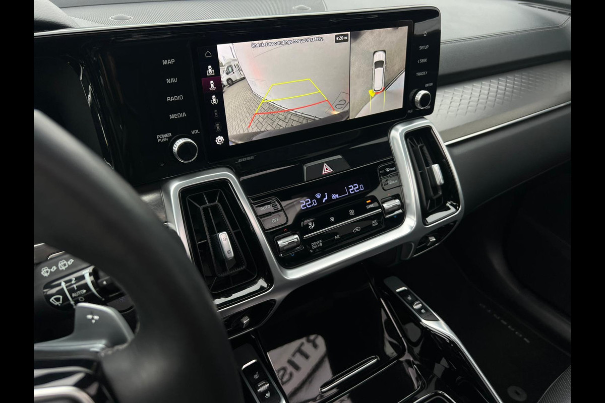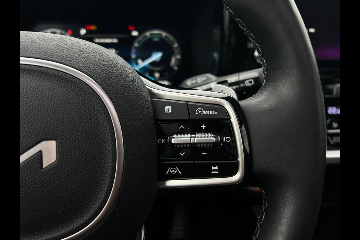 Een cockpit, een informatiecentrum... Wat is de cabine eigenlijk niet? Dankzij het digitale dashboard bent u van alles op de hoogte. Door het combineren van beelden van vier camera's, biedt de 360 graden camera een naadloos en gedetailleerd beeld van de hele omgeving rondom deze auto. Adaptive cruise control houdt de ingestelde snelheid vast en houdt automatisch afstand tot uw voorligger. Rijden-stilstaan, rijden-stilstaan. Niks is irritanter en vermoeiender dan filerijden. Daar heeft deze Kia Sorento een oplossing voor: de file assistent, die met radarmeting permanent het tempo aanpast op de voorligger. Zelfs als die stopt. Net als een smartphone of een slimme speaker kunt u deze auto bedienen met stemcommando's. Ook connected drive services, premium audiosysteem, full map navigatiesysteem, kruisend verkeer detectie, electronic climate control en schakelpaddles aan het stuur zijn aan boord.