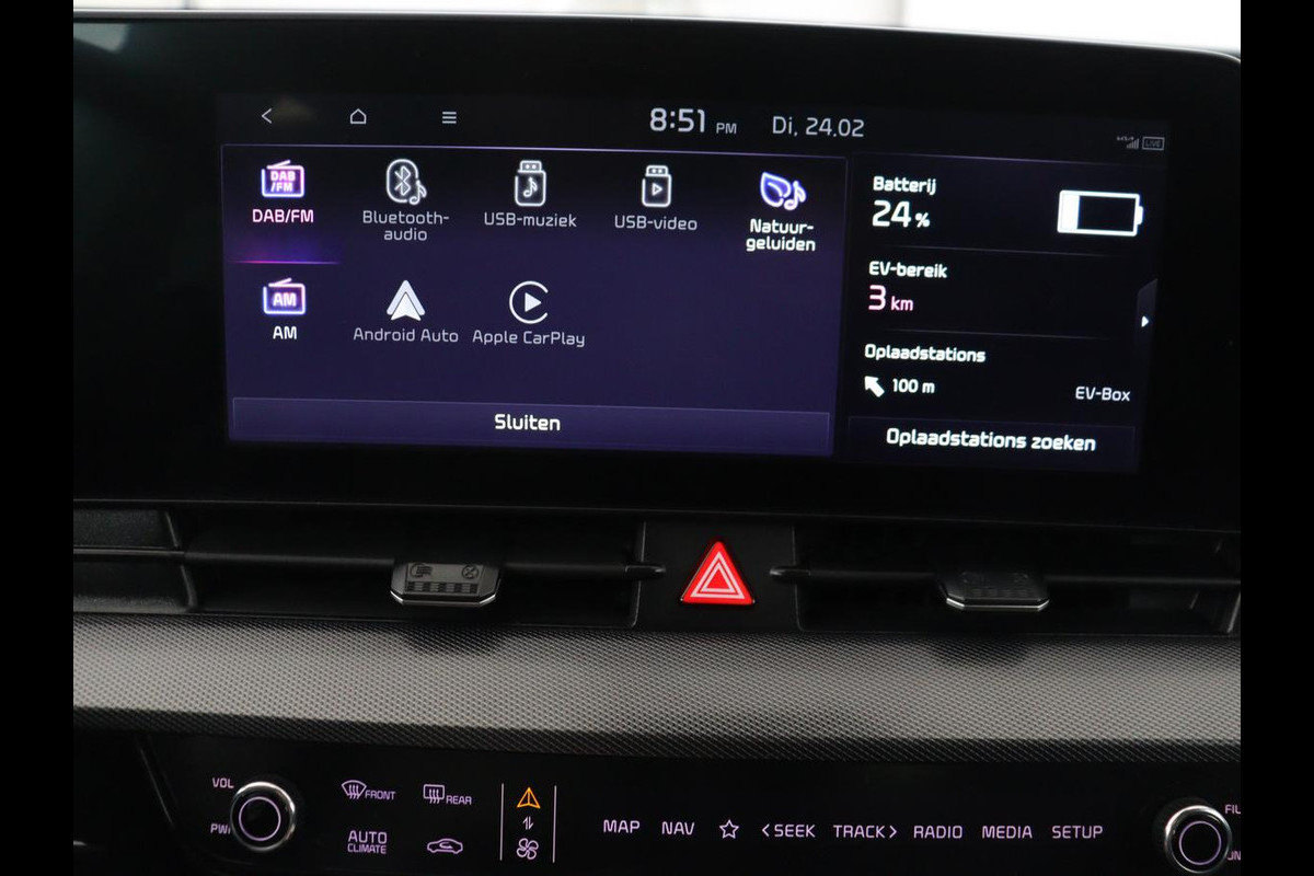 Het digitale dashboard geeft alle up-to-date info en functies voor een slimme en veilige rit. Met een gerust hart achteruitrijden? Dat kan, dankzij de achteruitrijcamera. Als u de adaptive cruise control inschakelt, regelt de auto zelf de snelheid en de afstand tot de auto voor u. Het infotainmentsysteem bedient u met uw vingers of met uw stem, met dank aan de geïntegreerde stembediening. Met Connected Services wordt iedere rit nóg veiliger. Ook is de Kia uitgerust met: full map navigatiesysteem, electronic climate control, draadloos opladen, DAB ontvangst, regensensor en keyless entry.