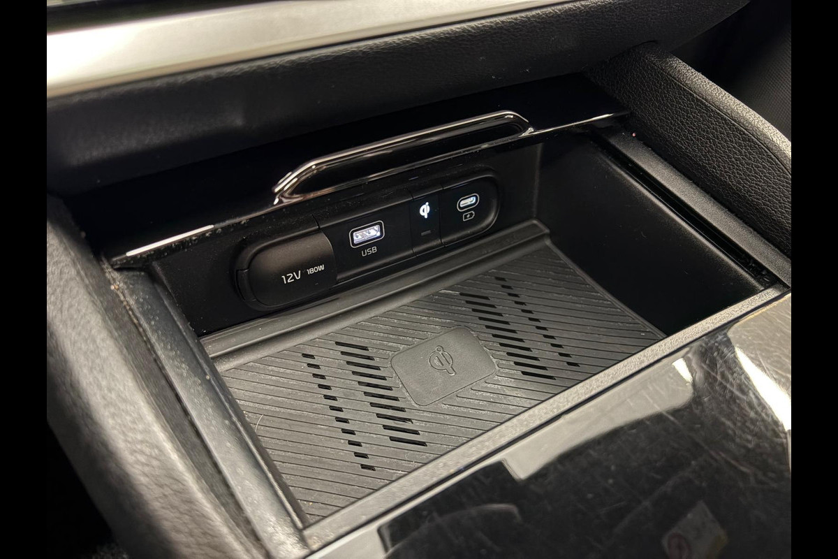 Een cockpit, een informatiecentrum... Wat is de cabine eigenlijk niet? Dankzij het digitale dashboard bent u van alles op de hoogte. Het inventieve 360 graden camerasysteem op deze auto heeft de functie om u assistentie te bieden in nauwe ruimtes en straten, waar het achteruit rijden vaak een uitdaging is. Als u de adaptive cruise control inschakelt, regelt de auto zelf de snelheid en de afstand tot de auto voor u. Appen met uw auto? Geen probleem. U kunt van overal contact opnemen, de functies controleren en activeren. U bedient 'm met remote services. U kunt tijdens de rit uw ogen steeds op de weg houden, want het audiosysteem (met DAB!) en het navigatiesysteem kunt u bedienen vanaf het stuur of met spraak. U bent in deze Kia ook voorzien van electronic climate control, draadloos opladen, regensensor, keyless entry en automatisch dimmende binnenspiegel.