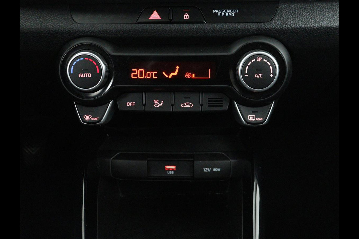 Kommaar-kommaar-kommaar, aldus de achteruitrijcamera. Iedere centimeter vrije ruimte komt haarscherp in beeld. Schadevrij inparkeren maar! Beste route, verwachte aankomsttijd: uw eigen full map navigatiesysteem vertelt u alles! Dankzij electronic climate control is het interieur behaaglijk warm of verfrissend koel. Een andere zender kiezen. Het geluid harder of zachter zetten. Met de audiobediening op het stuurwiel bedient u de radio veilig met uw handen aan het stuur. Met de DAB-ontvanger heeft u keuze uit talloze digitale radiozenders met de allerhoogste geluidskwaliteit. Ook is de Kia uitgerust met: regensensor, keyless entry, automatisch dimmende binnenspiegel en lederen stuur en versnellingspook.