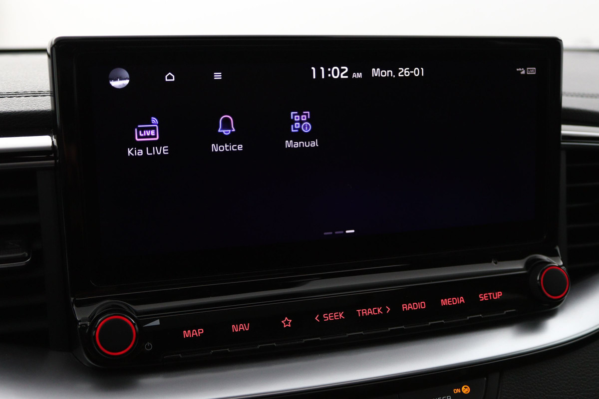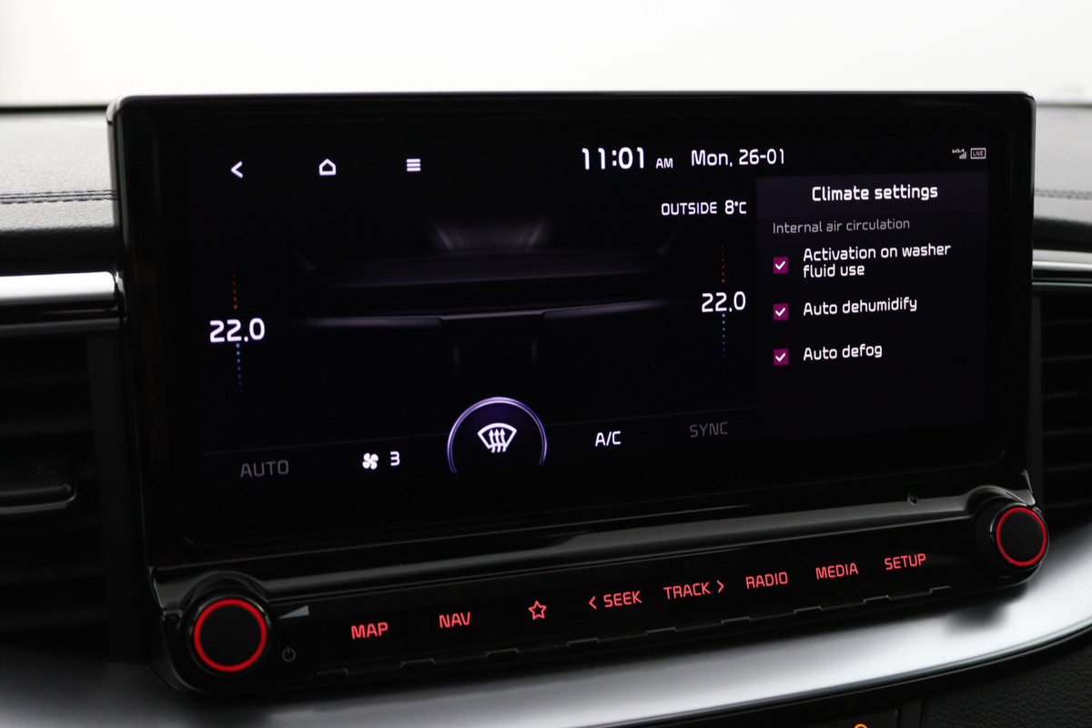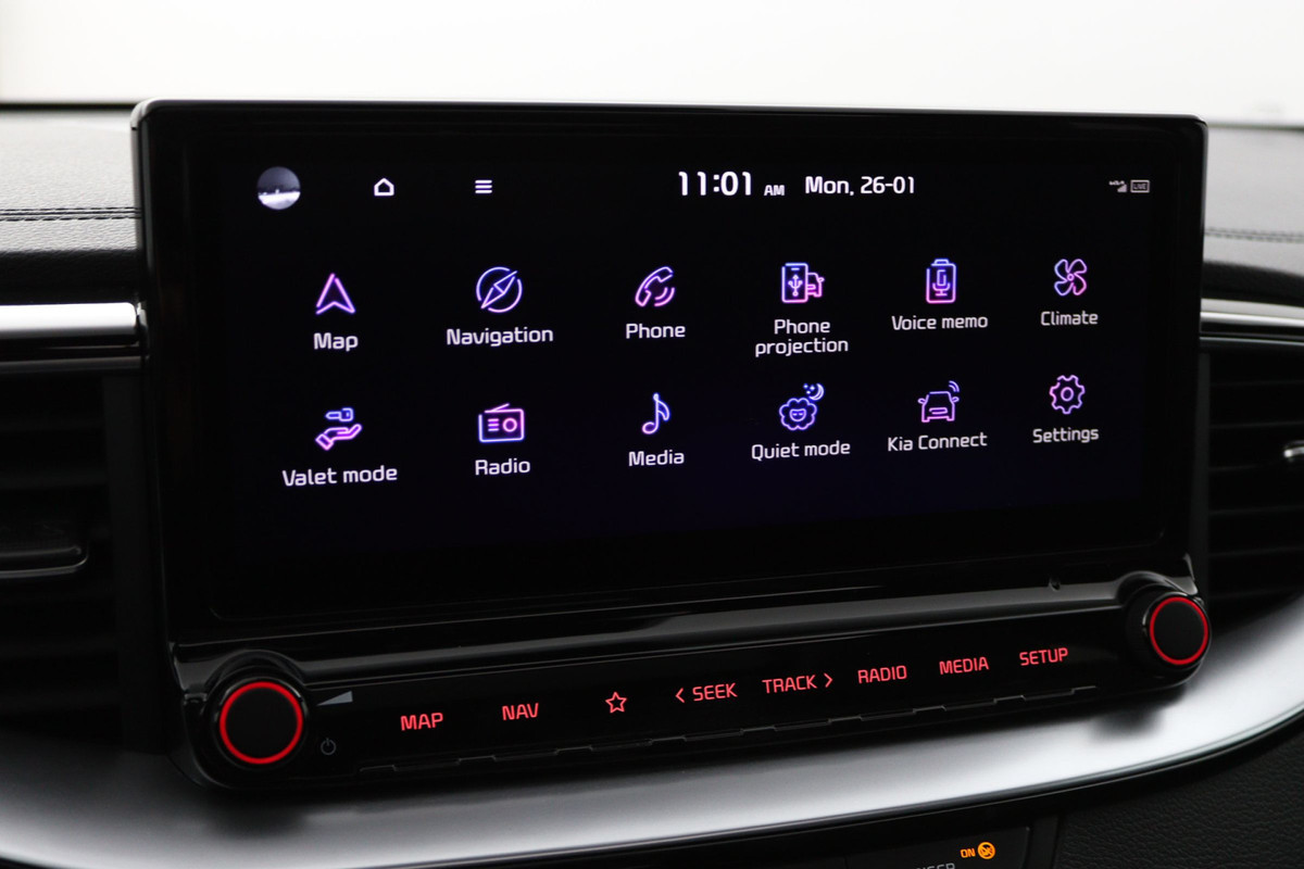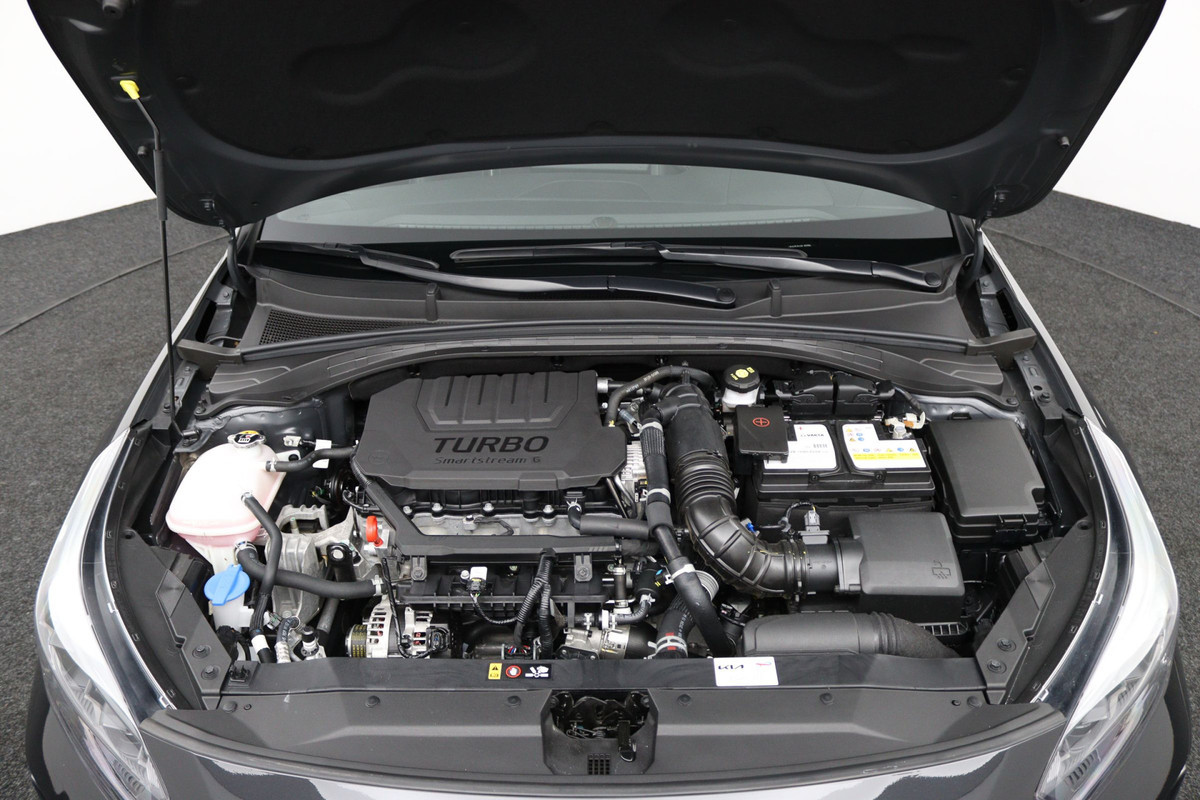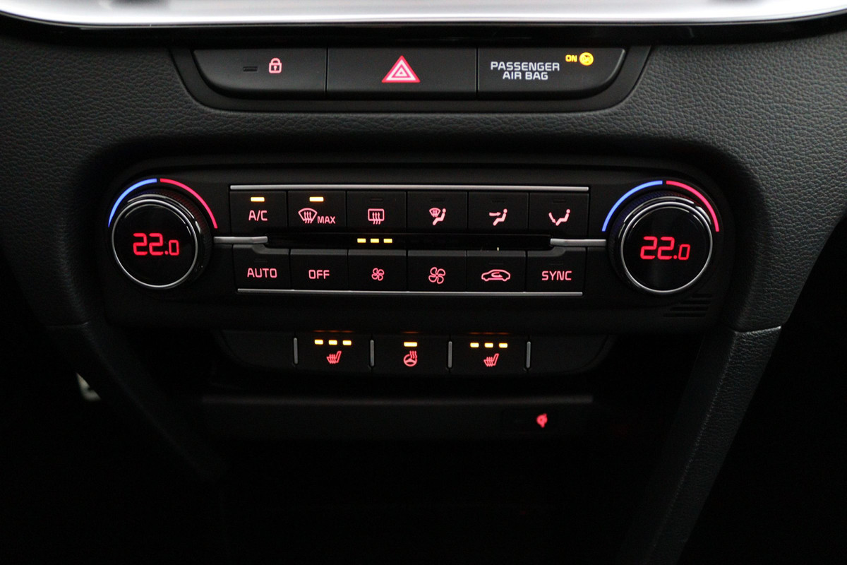 Praktisch, helder en uitermate handig is het digitale dashboard. Alle functies haarscherp in beeld! Inparkeren? Met de achteruitrijcamera heeft u er geen omkijken meer naar! Het infotainmentaanbod is zeer uitgebreid. Ontspannen reizen doet u met behulp van het full map navigatiesysteem terwijl u muziek afspeelt via het audio-installatiesysteem met DAB-radio. Onderweg uw smartphone opladen zonder gedoe met stekkers en kabels? Dat kan, met de draadloze oplaadmogelijkheid voor telefoons. Automatische airconditioning verwarmt of koelt het interieur met een druk op de knop. De Kia is standaard voorzien van: dashboard met spraakbediening, lederen sportstuur, regensensor, keyless entry, automatisch dimmende binnenspiegel en lederen versnellingspook.