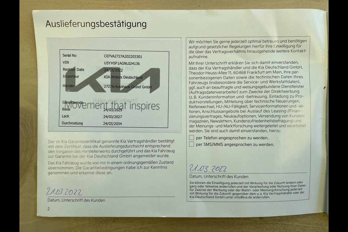 *Vrijwaren van de eventueel ingeruilde auto