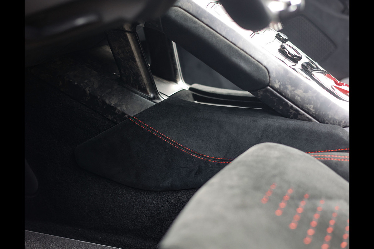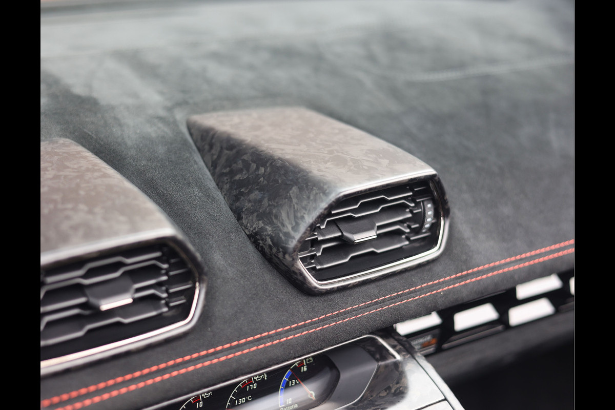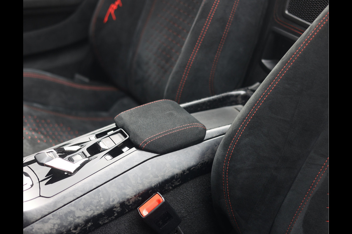 Het interieur is perfect afgestemd op het exterieur. Hier vinden we zwart Alcantara sportstoelen, versierd met prachtige rode stiksels en het Performante logo op de wangen. Ook het dashboard, middenconsole en zelfs de vloer is bekleed met zwart Alcantara voor het echte race-gevoel.