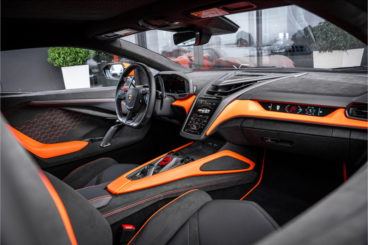 Het interieur vormt een meeslepende cockpitervaring waarbij luxe en high-tech samenkomen. Strakke vormen, hoogwaardige materialen en de volledig nieuwe digitale interface creëren een omgeving waarin elke beweging, elke functie en elke interactie gericht is op de bestuurder. De Revuelto is niet alleen snel, maar ook verrassend gebruiksvriendelijk en comfortabel voor zijn segment.