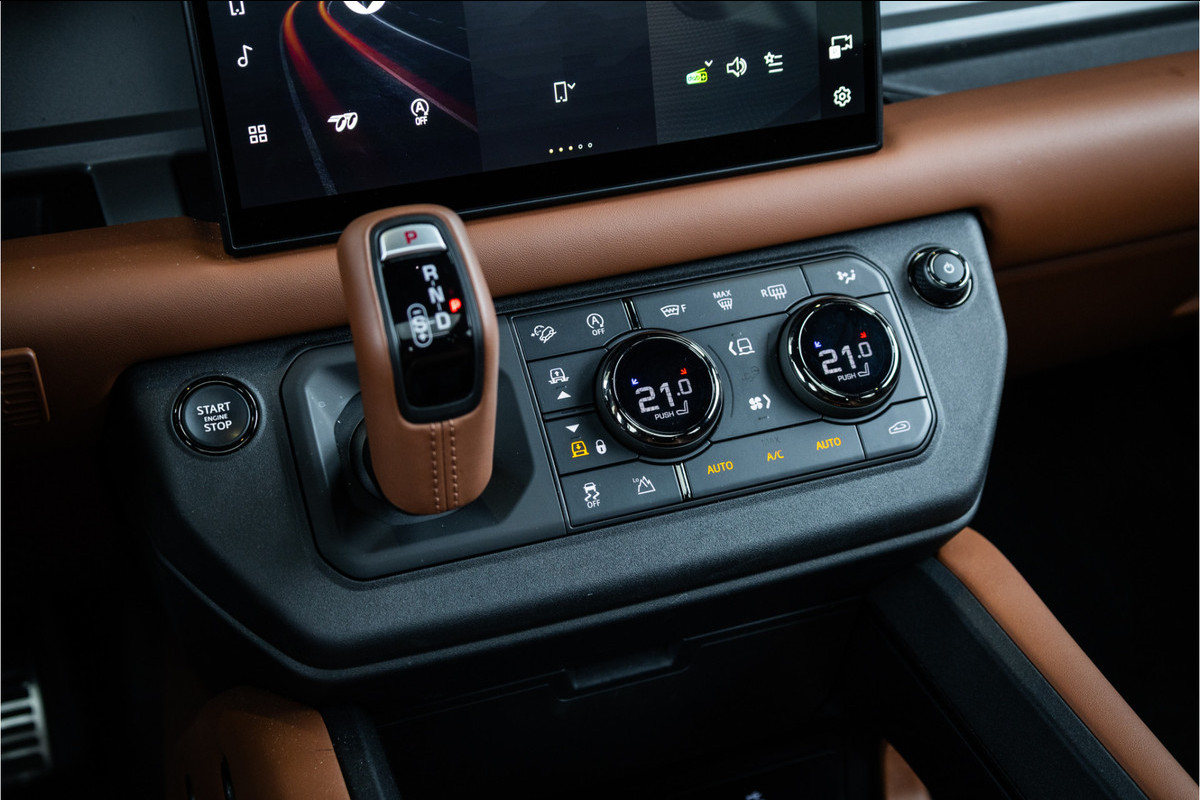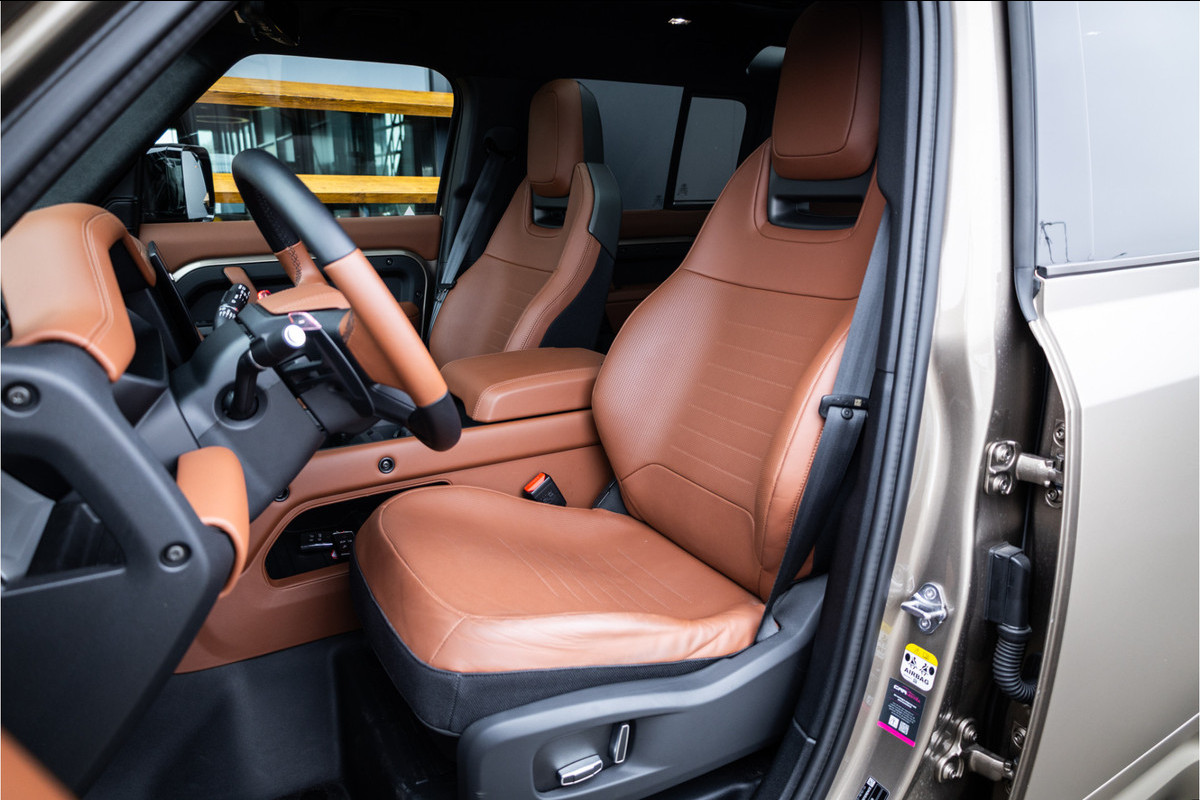 Binnenin vind je een ruim en robuust interieur met hoogwaardige materialen, comfortabele zitplaatsen en de nieuwste technologieën op het gebied van infotainment, connectiviteit en rijhulpsystemen. Of je nu lange ritten maakt, terrein trotseert of dagelijks onderweg bent, deze Defender biedt comfort, controle en vertrouwen in elke situatie.
