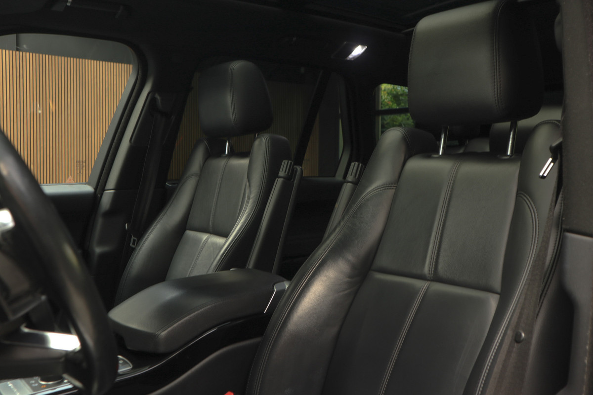 Pragmatisch en veilig als deze auto is, beschikt hij over diverse veiligheidssystemen. Deze Land Rover Range Rover is ook behulpzaam als het gaat om een rechte koers. Het Lane-keeping systeem signaleert en corrigeert als u onbedoeld de rijstrooklijnen dreigt te overschrijden. Verder is deze auto uitgerust met dodehoekdetectie en hill hold functie.