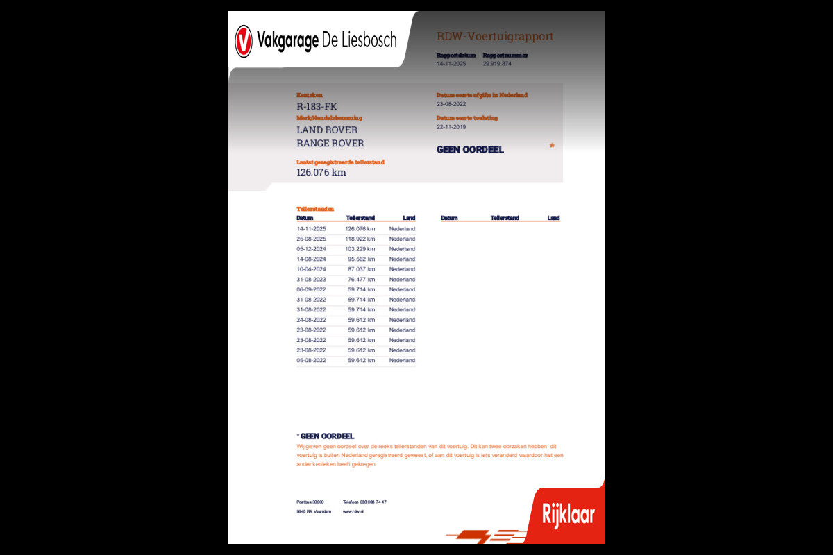Vakgarage de Liesbosch heeft altijd een wisselend aanbod van +- 80 occasions staan. De occasions die door Vakgarage de Liesbosch aangeboden worden hebben bij verkoop en anders bij aflevering altijd een geldige APK, hier hoeft niet extra voor betaald te worden tenzij anders aangegeven. “De prijs voor deze auto is inclusief een geldige APK en 12 maanden wettelijk bepaalde garantie.