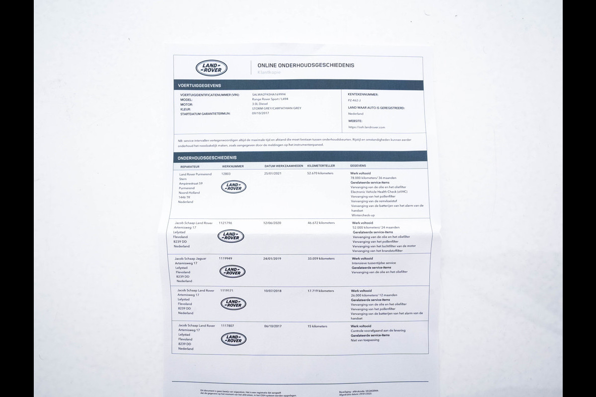 Onderhoudsboekjes: Aanwezig