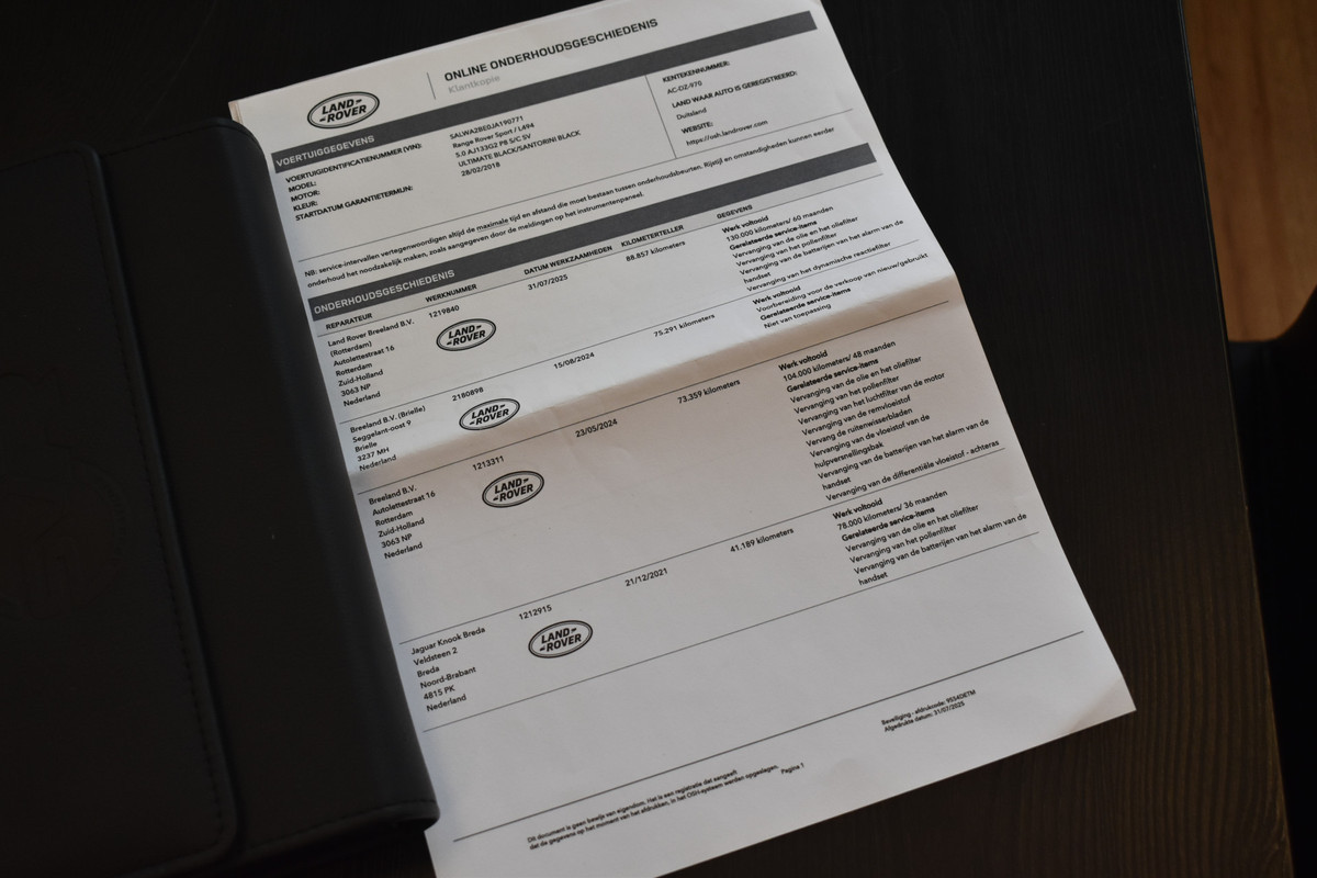 Onderhoudshistorie (deze Range Rover Sport is volledig dealer onderhouden):