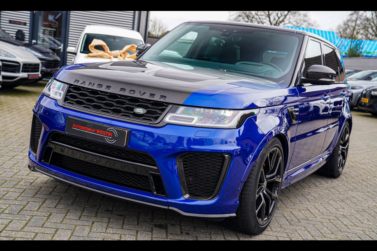 Nieuw binnen, deze schitterende TANZANITE BLUE/ESTORIL BLUE, 100% Land rover DEALER onderhouden, Land Rover Range Rover Sport 5.0 V8 SVR SC uit het jaar 2020. Echt een plaatje om te zien en een genot om mee te rijden.