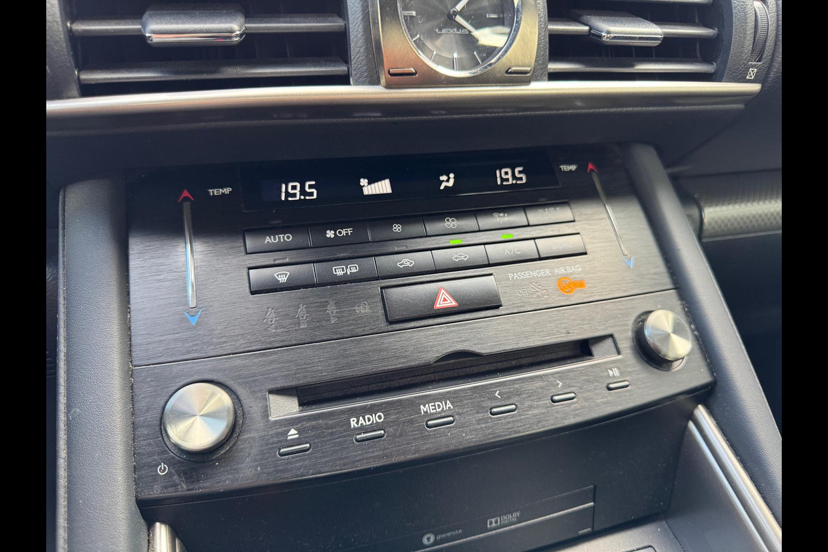 Het infotainmentsysteem is niet alleen voorzien van een in dashboard opgenomen navigatiesysteem maar ook uitgerust met bluetooth, DAB-ontvanger en usb. Met de aanwezige parkeersensoren weet u altijd zeker of het past. De ruitenwissersnelheid wordt bij iedere bui perfect geregeld dankzij de regensensor. Ook op de korte stukken is de cruise control een uitkomst. Kijk maar bij de benzinepomp! Met de keyless entry ontgrendelt deze Lexus Is zich automatisch als u het portier wilt openen. En dan is deze auto ook nog eens voorzien van audiobediening op het stuurwiel, airconditioning, automatisch dimmende binnenspiegel, isofix-aansluiting en bekerhouder.