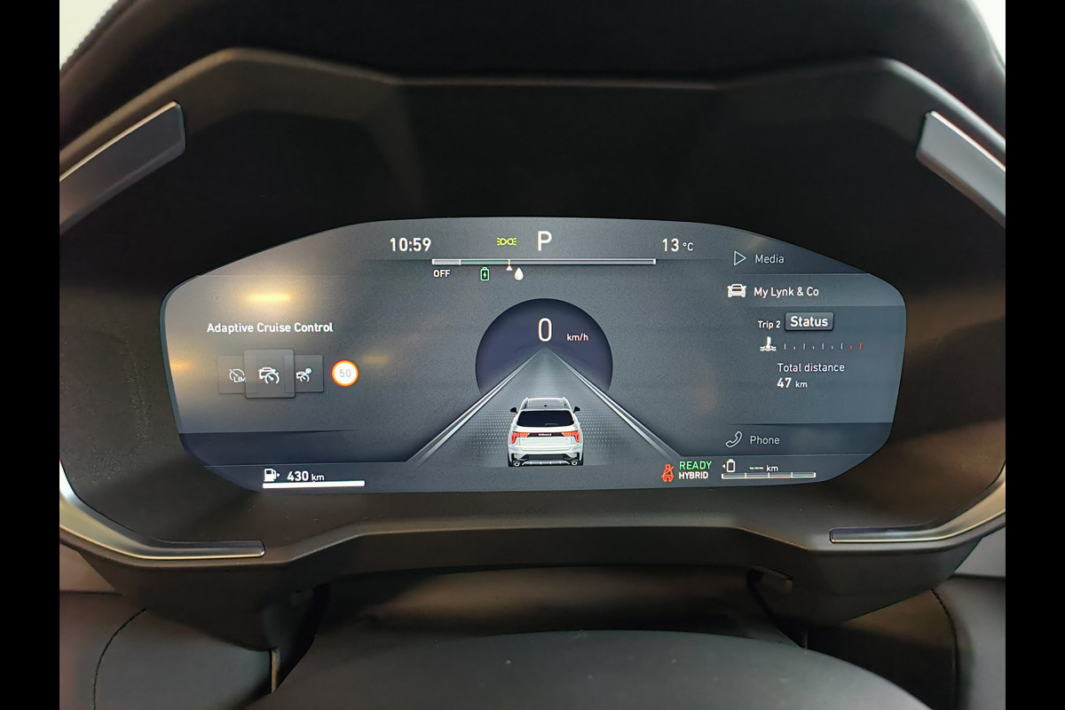Het eigentijdse interieur wordt natuurlijk helemaal volmaakt met het digitale dashboard. Adaptive cruise control is een comfortabele en veilige optie. Het systeem reguleert de snelheid en houdt automatisch afstand tot uw voorligger. In de file rijden vreet concentratie. Daarom komt de file assistent te hulp om veilig afstand te houden en automatisch te stoppen als uw voorligger stilstaat. Slimme spraakbesturing herkent gesproken opdrachten en voert ze uit. Zuinig, veilig en ontspannen op pad: dat kan dankzij het aanwezige full map navigatiesysteem. Ook WIFI-hotspot, achteropkomend verkeer waarschuwing, automatische airconditioning, draadloos opladen, DAB ontvangst en parkeersensoren achter zijn aan boord.