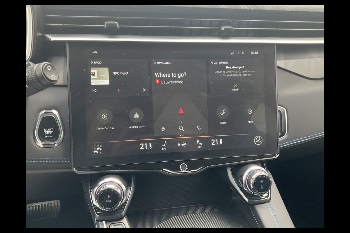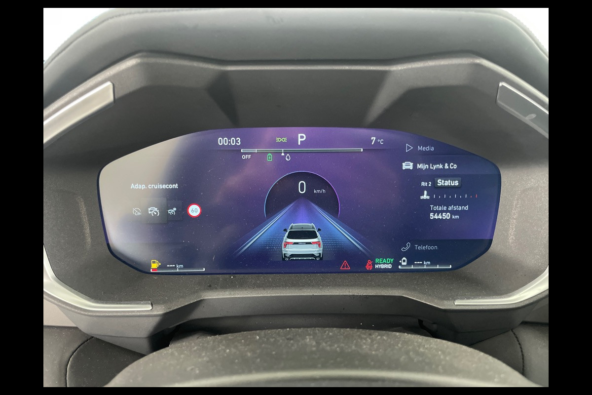 Alle ritinformatie en communicatie is gebundeld in één overzichtelijk digitale dashboard. Adaptive cruise control houdt de ingestelde snelheid vast en houdt afstand tot het voertuig voor u. Loopt het verkeer onderweg vast, schakel dan de file assistent in en laat het systeem zorgen voor de juiste afstand bij stilstaan en rijden. Voor de veiligheid op de weg is het goed dat u uw ogen op de weg kunt houden en uw handen aan het stuur. Want het audio-installatiesysteem, met DAB-ontvangst, en het full map navigatiesysteem bedient u vanaf het stuurwiel en met spraakbediening. Klik de smartphone in de houder en de draadloze telefoonlader zorgt voor een volle accu. Ook is de Lynk & Co uitgerust met: WIFI-hotspot, achteropkomend verkeer waarschuwing, automatische airconditioning, parkeersensoren achter, regensensor en keyless entry.