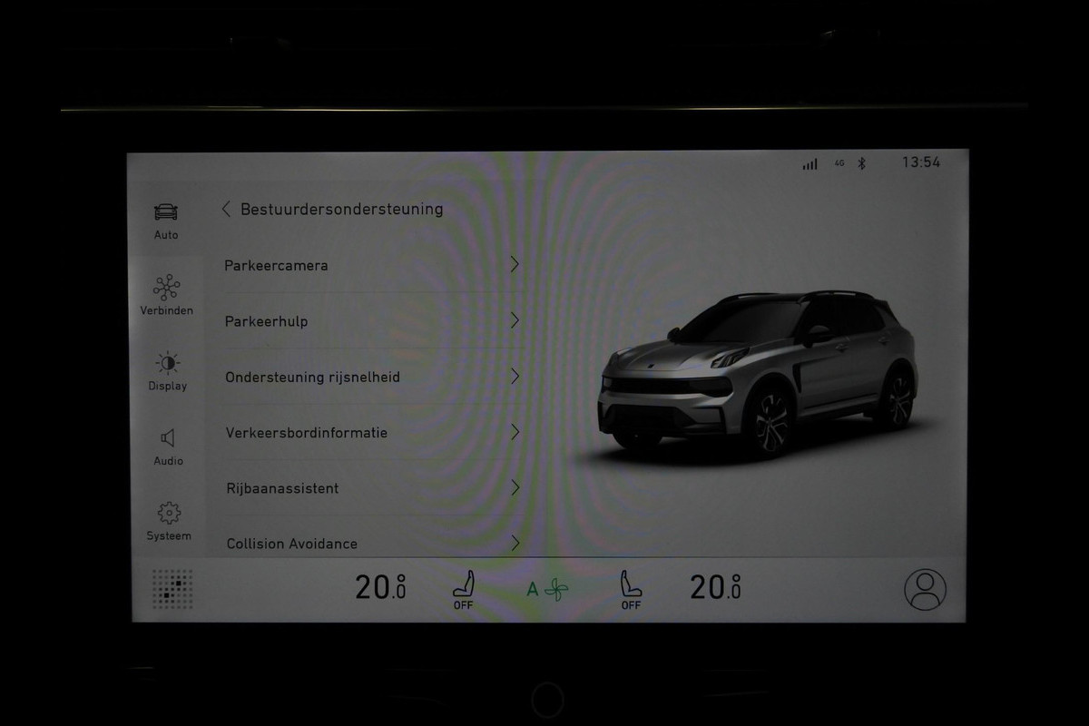 Deze Lynk & Co is voorzien van verschillende intelligente veiligheidsvoorzieningen. Ze kijken tijdens het rijden als het ware met u mee, ze signaleren potentieel gevaarlijke situaties en in een aantal gevallen kunnen ze ook ingrijpen. In het instrumentarium ziet u tijdens de rit ook de belangrijkste verkeersborden aangegeven, die de auto automatisch voor u leest. Voorzien van het Lane-keeping systeem. Ofwel: blijf automatisch in je baan. Het systeem van forward collision warning, of in gewoon Nederlands 'botswaarschuwing', treedt in werking als de sensor te weinig afstand signaleert met een voor- of tegenligger. Bovenop deze veiligheidsfeatures heeft deze Lynk & Co bovendien dodehoekdetectie, hill hold functie, brake assist en vermoeidheidsherkenning.