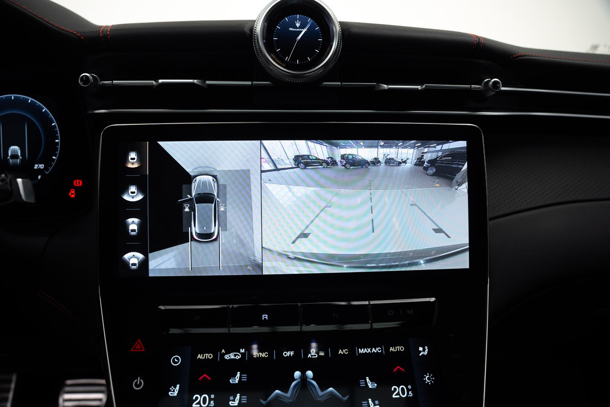 Met de nieuwste technologieën aan boord is deze Maserati in staat om zelf te reageren op potentieel gevaarlijke situaties op de weg. Dat de auto steeds meer taken van de bestuurder overneemt, merkt u bijvoorbeeld aan het systeem voor verkeersbord-detectie in deze Maserati. Voorzien van het Lane-keeping systeem. Ofwel: blijf automatisch in je baan. Met de vermoeidheidsassistent bent u ook op lange ritten veilig op pad. Het systeem geeft een waarschuwing zodra het tijd is voor een pauze.