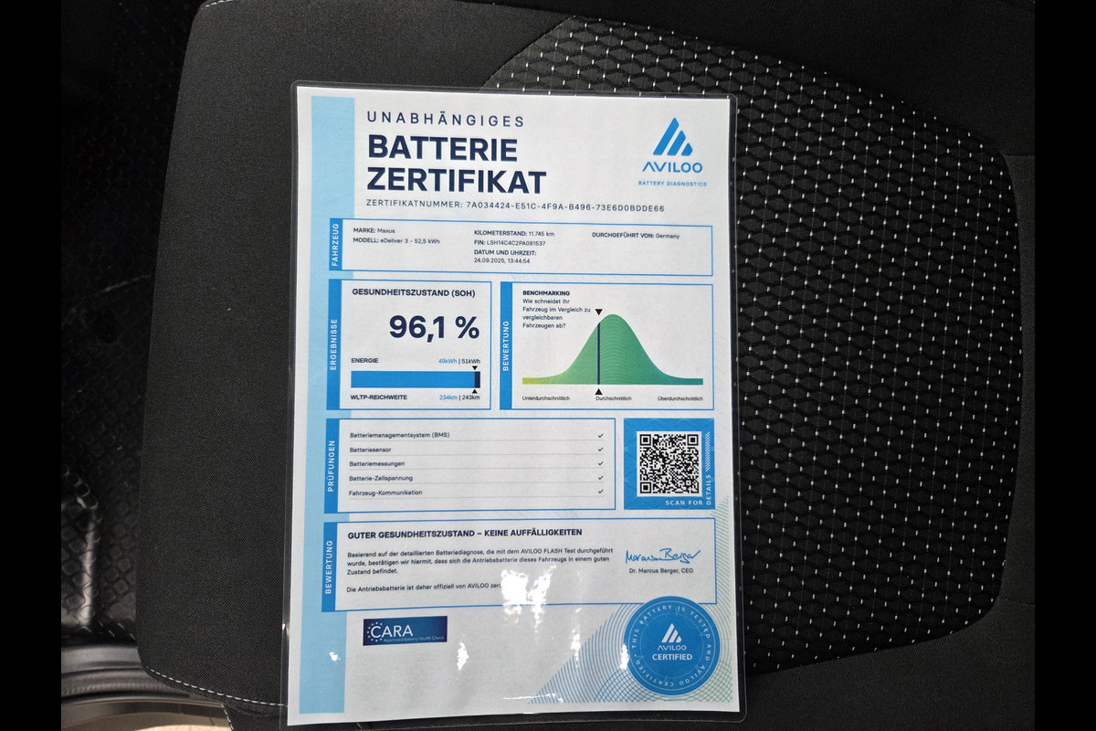 Maxus eDeliver 3 LWB 52,5 kWh L2 Lang Cruise control Camera Airco Aviloo Rapport 96,1% WLTP 234-243 KM