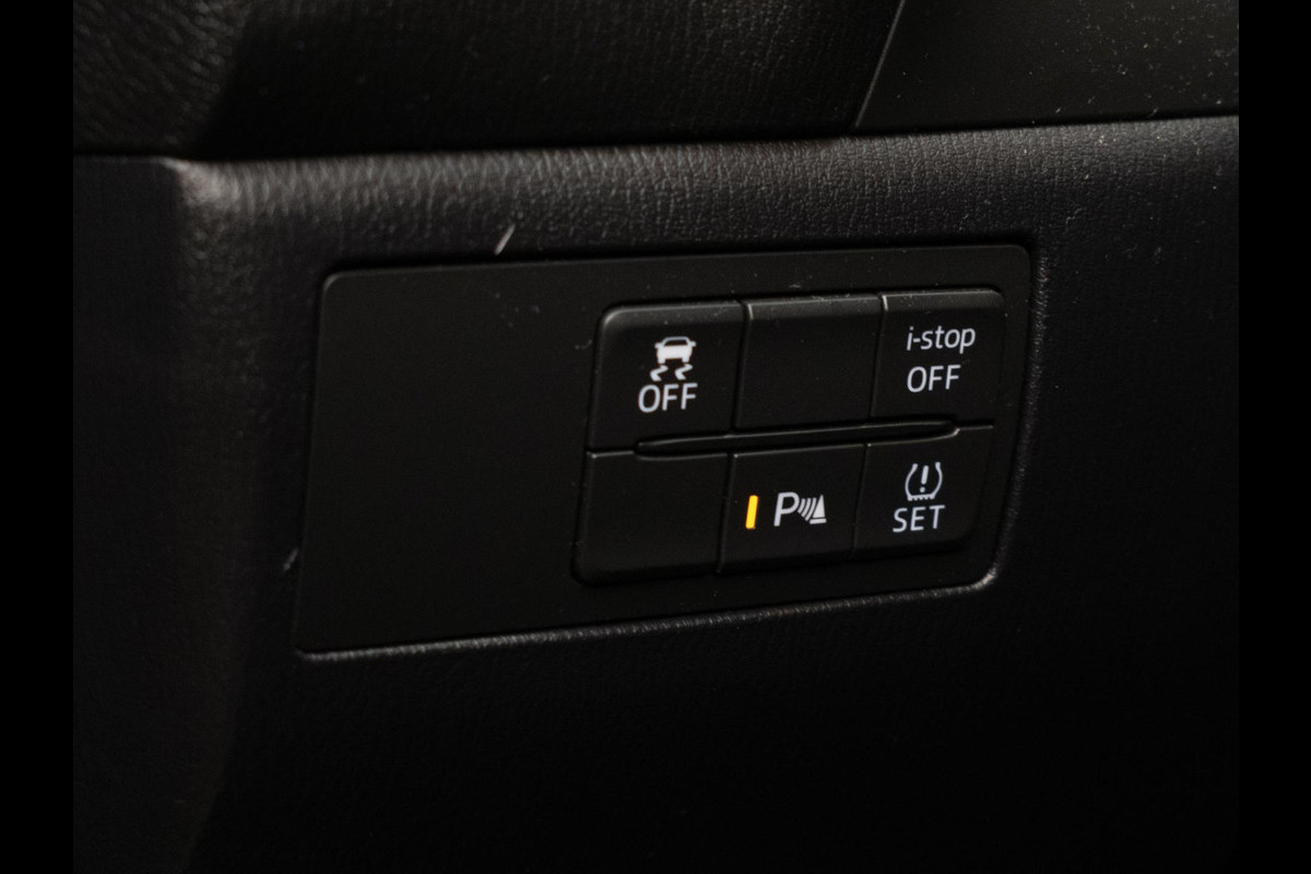 Bij het inparkeren laat de achteruitrijcamera precies zien hoeveel meter... decimeter... centimeter ruimte er nog is! Het navigatiesysteem en het audiosysteem (met DAB-ontvangst!) bedient u met knoppen op het stuur of met gesproken commando's. Op een drukke weg heeft u soms ogen in uw achterhoofd nodig. De sensoren aan de achterzijde nemen die functie over en geven een achteropkomend verkeer waarschuwing als een achterligger te dicht op u zit. Met electronic climate control hoeft u alleen de gewenste temperatuur in te stellen. Het systeem doet de rest. Achter het stuur van deze Mazda bent u niet alleen. De auto kijkt als het ware met u mee tijdens de rit. De regensensor schakelt de ruitenwissers in als het nodig is en de automatisch inschakelbare verlichting doet de lichten voor u aan. U bent in deze Mazda ook voorzien van cruise control, automatisch dimmende binnenspiegel, centrale deurvergrendeling met afstandsbediening, boordcomputer en lederen versnellingspook.