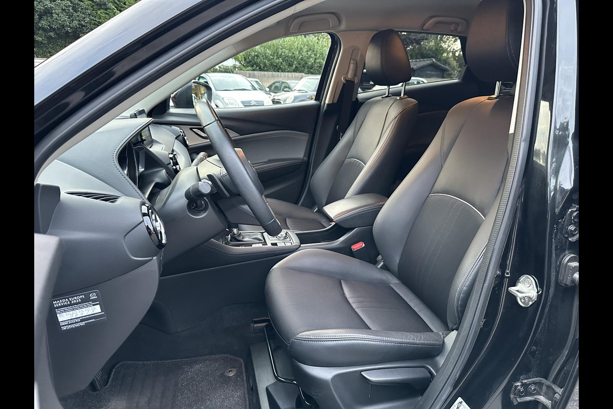 Schitterende in nieuwstaat verkerende CX-3 2.0 Automaat in de meest complete uitvoering. Voorzien van o.a. Half lederen bekleding, LED koplampen, 360 graden camera, adaptieve cruise control, keyless entry, headup display, Bose geluid, stoelverwarming, stuurverwarming, Apple CarPlay, dodehoek sensor, achteruitrijassistent, rijstrook sensor, etc.