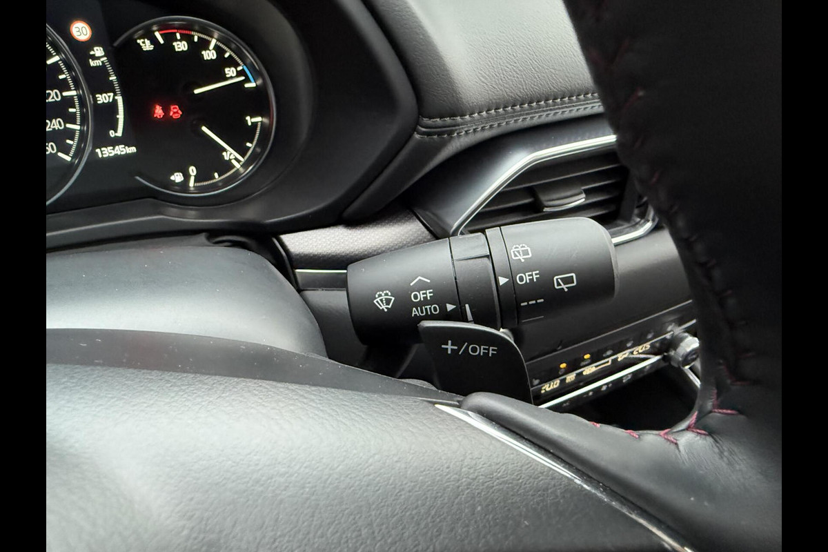 De 360 graden camera op deze auto is een innovatieve functie die de obstakels rondom de auto in beeld brengt voor een optimaal zicht. Adaptive cruise control is een comfortabele en veilige optie. Het systeem reguleert de snelheid en houdt automatisch afstand tot uw voorligger. Loopt het verkeer onderweg vast, schakel dan de file assistent in en laat het systeem zorgen voor de juiste afstand bij stilstaan en rijden. Slimme spraakbesturing herkent gesproken opdrachten en voert ze uit. Zoals u van zo'n jonge auto mag verwachten, zijn hier ook de geavanceerde remote services aanwezig. Simpelweg met een app op uw smartphone controleert u op afstand de status van de auto en bedient u diverse functies. De Mazda is standaard voorzien van: premium audiosysteem, full map navigatiesysteem, achteropkomend verkeer waarschuwing, electronic climate control, schakelpaddles aan het stuur en draadloos opladen.