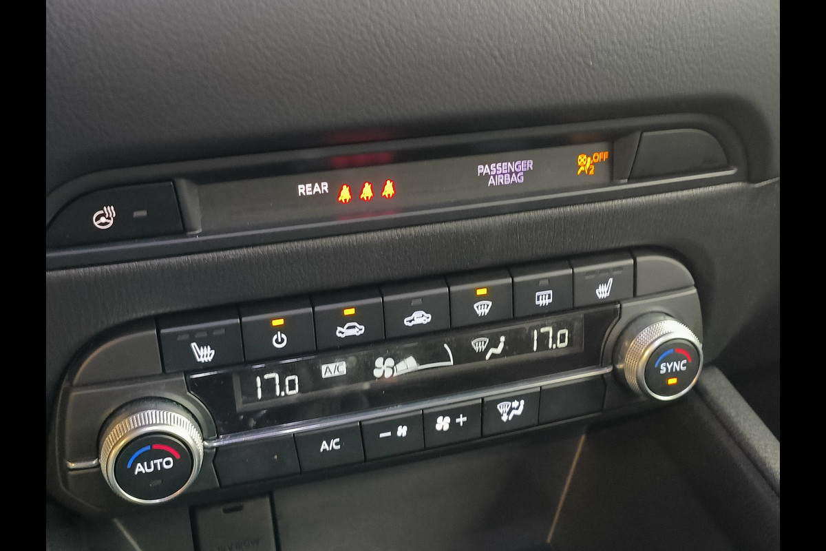 De nieuwste veiligheidssystemen komen in deze Mazda CX-5 samen. Ogen op de weg en toch alle dashboardinfo in beeld? Daar zorgt de head-up display voor! Dat de auto steeds meer taken van de bestuurder overneemt, merkt u bijvoorbeeld aan het systeem voor verkeersbord-detectie in deze auto. Deze Mazda CX-5 is ook behulpzaam als het gaat om een rechte koers. Het Lane-keeping systeem signaleert en corrigeert als u onbedoeld de rijstrooklijnen dreigt te overschrijden. Bovenop deze veiligheidsfeatures heeft deze Mazda bovendien dodehoekdetectie, forward collision warning system, hill hold functie, brake assist, vermoeidheidsherkenning en bandenspanningcontrolesysteem.