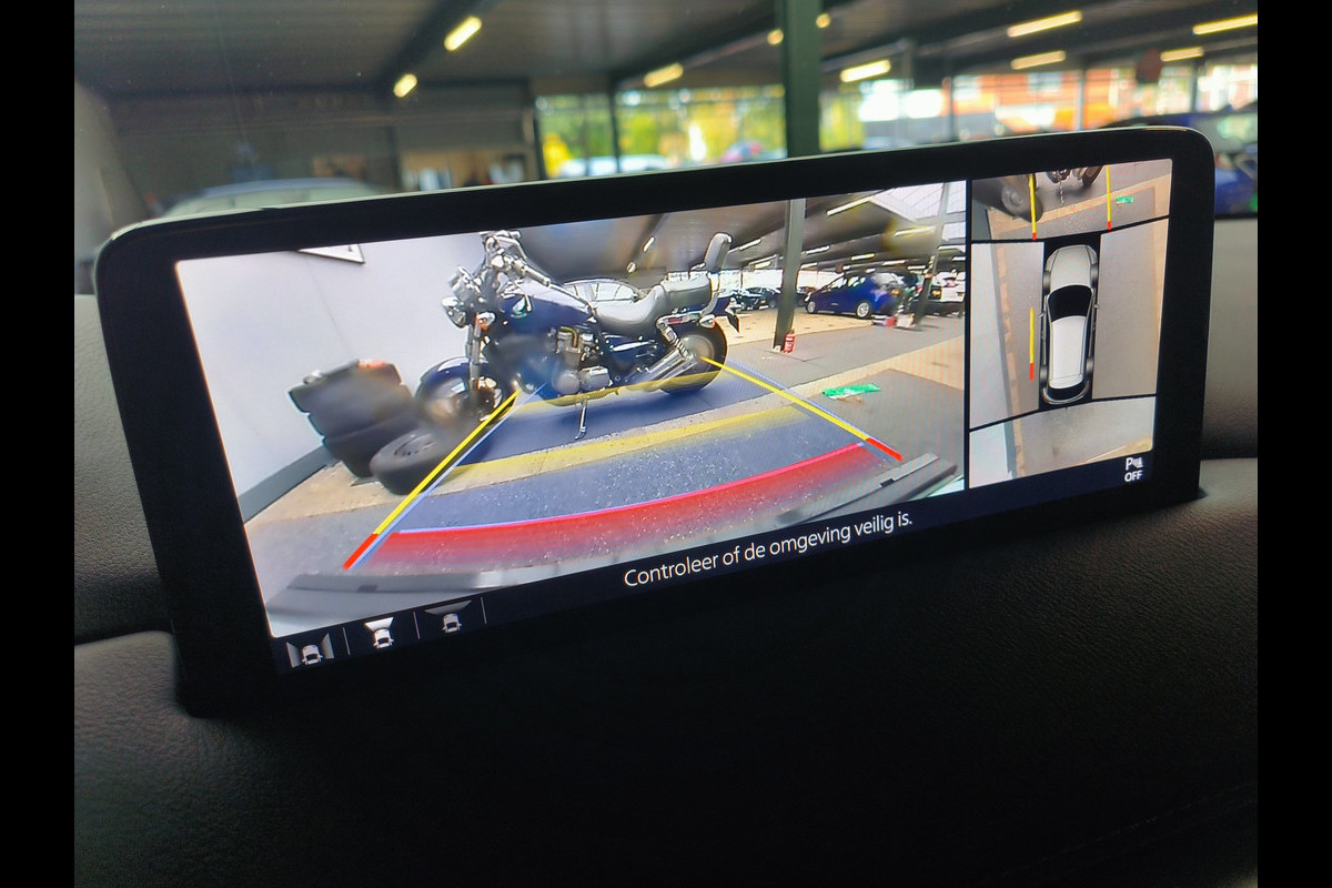 Of u nu achteruit rijdt, parkeert of een smalle straat inslaat, de 360 graden camera op deze auto, mogelijk gemaakt door vier camera's, biedt een perfect beeld van uw omgeving. Als u regelmatig met een aanhanger of een fietsendrager op pad bent, is de afneembare trekhaak een praktische extra. Deze Mazda CX-5 is voorzien van remote services. Via uw smartphone bedient u diverse functies ook op afstand en krijgt u informatie over de status van uw auto. Het audiosysteem met DAB-ontvangst en het full map navigatiesysteem bedient u veilig met knoppen op het stuurwiel of met gesproken commando's. De auto is voorzien van een draadloze telefoonlader, zodat uw smartphone tijdens de rit 100% wordt. Deze auto is voorzien van achteropkomend verkeer waarschuwing, electronic climate control, regensensor, cruise control, keyless entry en automatisch dimmende binnenspiegel.