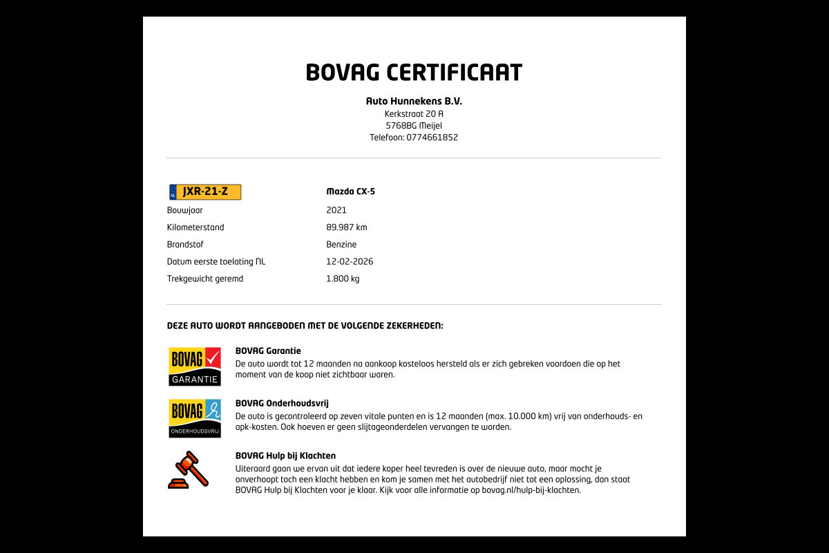 Inbegrepen afleverpakket: 12 Maanden BOVAG garantie: