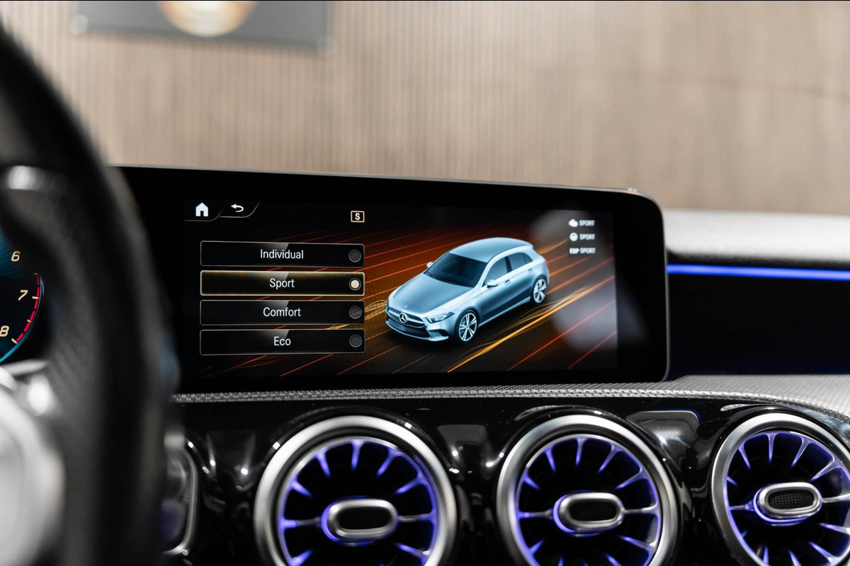Zoals u mag verwachten van deze Mercedes-Benz A-klasse is hij uitgerust met een reeks aan actieve veiligheidssystemen. In het instrumentarium laat de verkeersborddetectie de actuele verkeersborden zien. Het Lane-keeping systeem registreert permanent of u binnen de lijnen van de rijstrook blijft; dwaalt u onbedoeld af, dan waarschuwt het systeem en corrigeert de koers. Het accident avoidance system helpt aanrijdingen te voorkomen en vergroot de veiligheid voor u en uw passagiers. Verder is deze auto uitgerust met brake assist en bandenspanningcontrolesysteem.