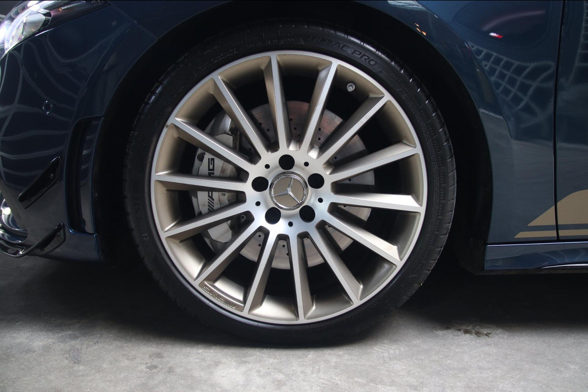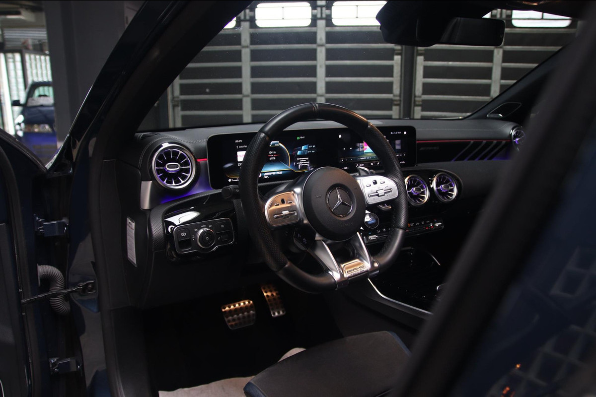 Nieuwe binnen deze Mercedes-Benz A35 Edition 1 uit 2019 in de prachtige kleur Deminblau! De speciale uitvoering met het Demiblue exterieur in combinatie met de goude accenten die terugkomen in het exterieur en de velgen is schitterend om te zien!