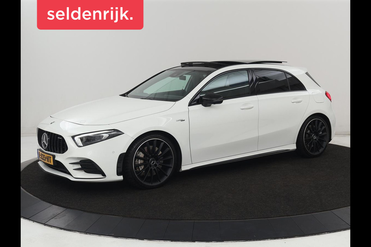 Mercedes-Benz A-Klasse AMG 35 4Matic Night | Panoramadak | Carplay | Widescreen | Stoelverwarming | Burmester | 360 camera | Sfeerverlichting | Leder/Alcantara | Navigatie
