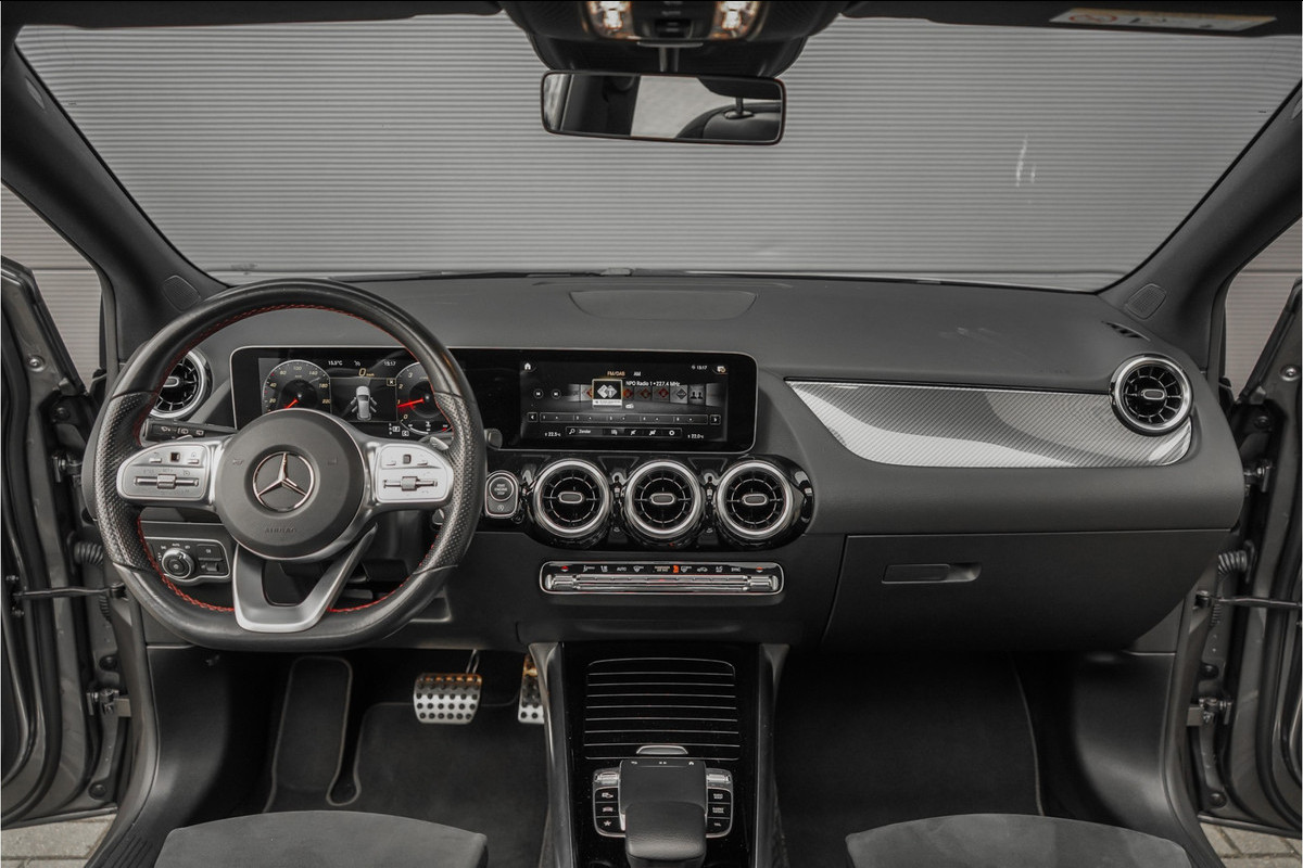 Autobedrijf Schouten biedt u deze Mercedes-Benz B-Klasse 200 Business Solution AMG aan, origineel Nederlands en volledig dealeronderhouden. Het exterieur van de Mercedes is uitgevoerd in de metallic kleur: 'Mountaingrau', gecombineerd met een zwart lederen / alcantara interieur. Verder beschikt de Mercedes-Benz B-Klasse 200 Business Solution AMG over een mooie lijst met opties, waaronder: