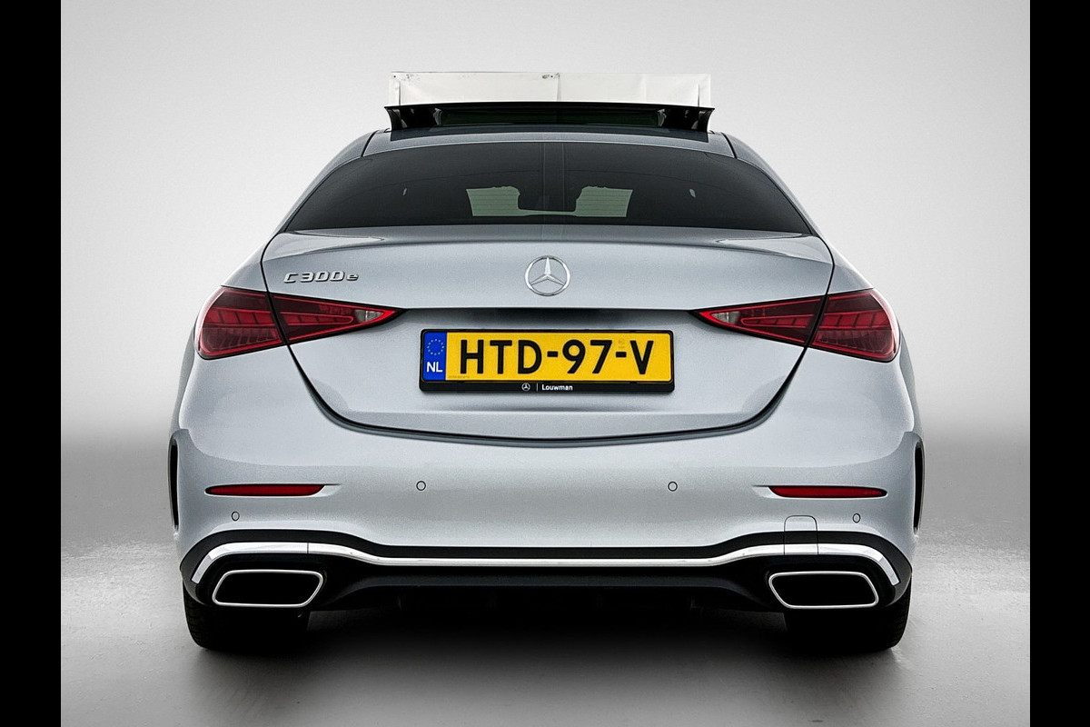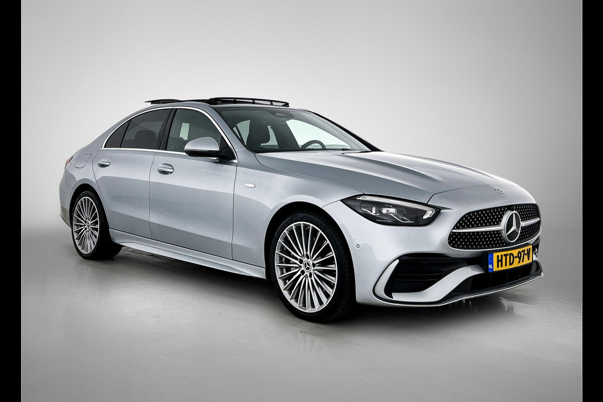 Mercedes-Benz C-Klasse 300 e Business Solution AMG AMG Line | Panorama Schuif-Kanteldak | Distronic | Lederen bekleding | Alarm | Parkeerpakket met 360°-camera | 20 Inch AMG Velgen. Inclusief 24 maanden Mercedes-Benz Certified garantie voor Europa.
