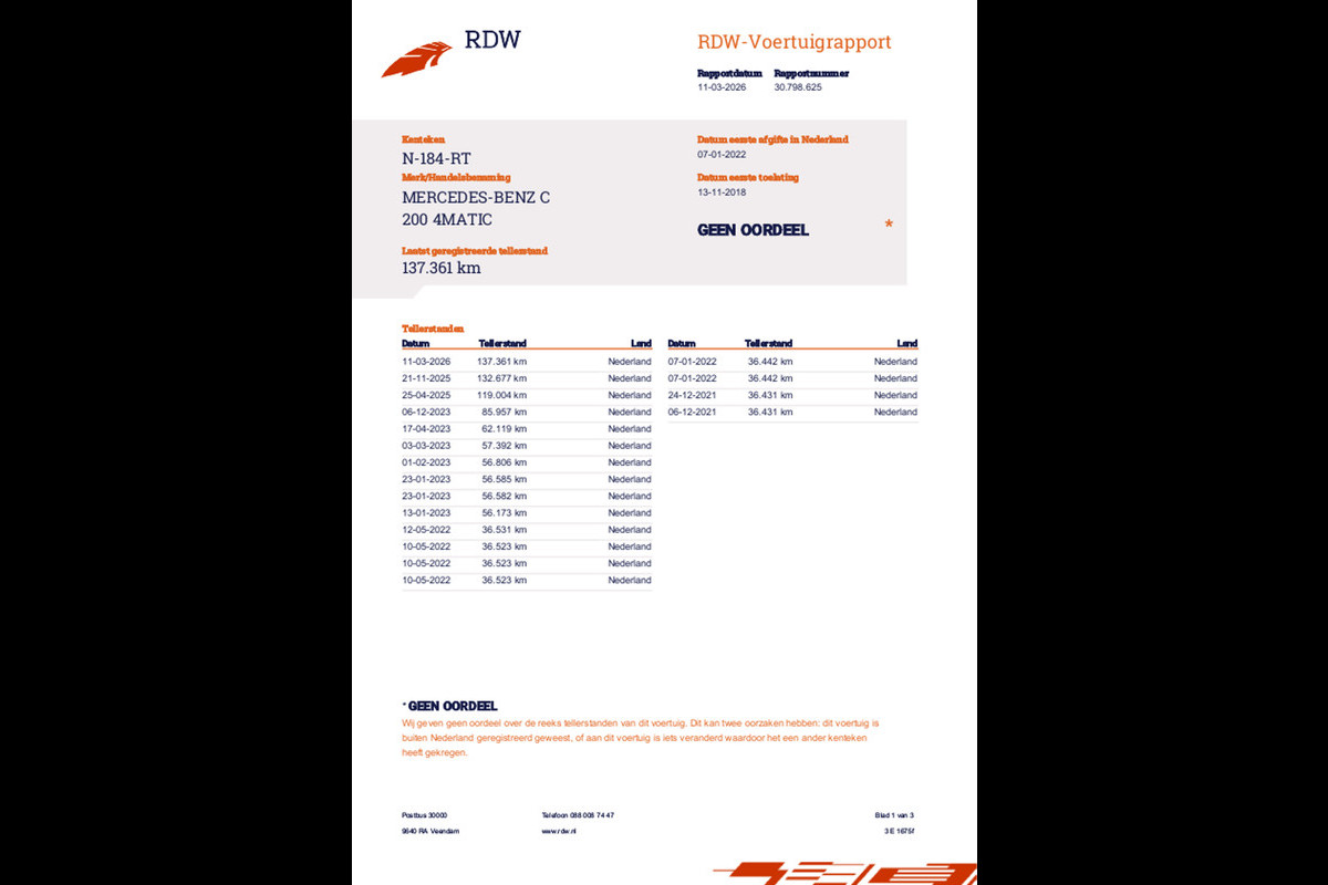 In zeer nette staat verkerende Mercedes-Benz C-klasse Estate 200 4MATIC Advantage Pack uit 2018 met slechts 137.364 km op de teller (met Nationale Autopas).