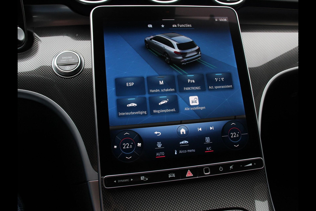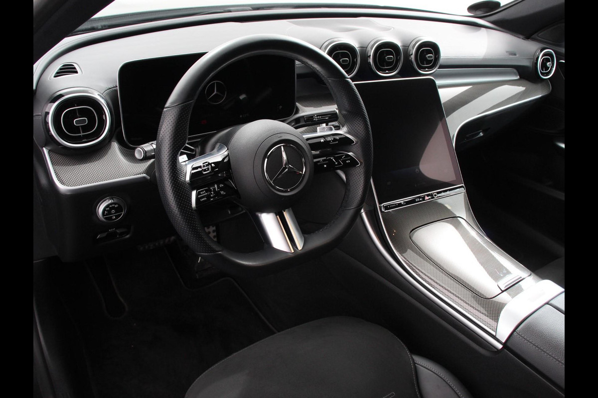 Mercedes-Benz C-Klasse Estate 200 AMG Line | Climate control | Achteruitrijcamera | Wegklapbare trekhaak | Navigatie | Dodehoek assistent | LED | Sfeerverlichting | Adaptieve cruise control | Verwarmde voorstoelen | Elektrische kofferbak