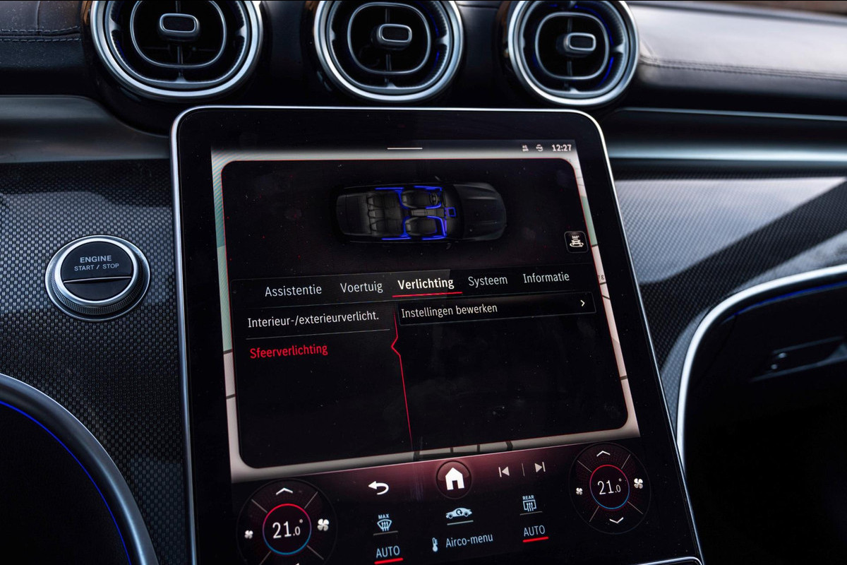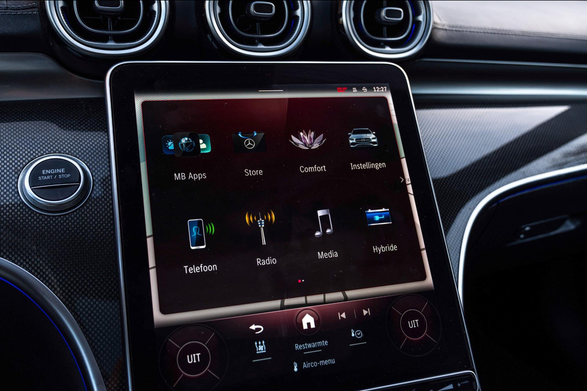 Zeer nette Mercedes C-Klasse Estate 300 e AMG Line met gecombineerd 313 PK! Van binnen en buiten in keurige staat en volledig dealer onderhouden! Historie aanwezig. Betreft een BTW Auto. Actieradius elektrisch +- 100 KM! Bijzonder rijk uitgerust met de juiste opties zoals o.a; 18'' Lm-velgen, Parkeersensoren voor en achter, Glazen schuif-kanteldak, AMG Interieur en Exterieur, Getint glas, LED High Performance Koplampen, Achteruitrijcamera, Sfeerverlichting, Apple Carplay - Android auto, Carbon Look Interieur afwerking, Stoelverwarming, Elektrisch verstelbare voorstoelen met geheugen, Head-Up Display, Audio Upgrade, 360 Graden Camera, Etc. Etc.
