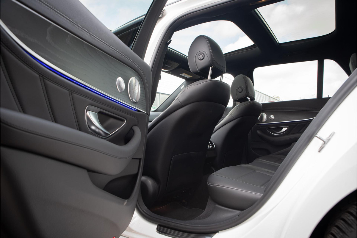 U merkt het aan de look and feel van deze auto: dit is kwaliteit. De Mercedes-Benz E-klasse Estate is ontworpen volgens de Duitse opvattingen van kwaliteit en degelijkheid, maar biedt tegelijk een hoge mate van comfort en uitstekende rijkwaliteiten. De begrippen exclusief en sportief zijn allebei van toepassing op de markante AMG-styling. Deze auto heeft maar weinig kilometers gemaakt, de teller staat op slechts 17299 kilometer. Hij heeft een benzinemotor en een automatische transmissie. Op het lijstje aantrekkelijke extraatjes vallen meteen op: het lederen interieur en de elektrisch bedienbare achterklep. Zit u goed? De stoelen zijn eenvoudig instelbaar dankzij de elektrische bediening met geheugen. Met deze auto gaat open rijden wel heel erg eenvoudig: het elektrische dak opent of sluit met een druk op de knop. Bij de rijke uitrusting horen ook 19 inch lichtmetalen velgen, dakspoiler, aluminium dakrailing, warmtewerend glas, led-achterlichten, verstelbare lendensteunen, elektrisch bediende ramen, elektrisch inklapbare buitenspiegels, led-dagrijverlichting en in delen neerklapbare achterbank.