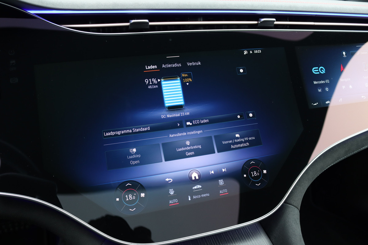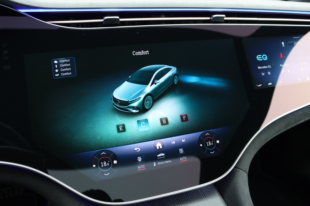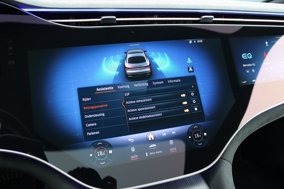 Mercedes-Benz EQS 500 4MATIC AMG Line 108 kWh | Luchtvering | Achterasbesturing | Distronic+ | Memory | Nekverwarming | Massage | Entertainment Achter+ | Verwarmd Stuurwiel | HUD | Burmester | Panoramadak | Digital Light |