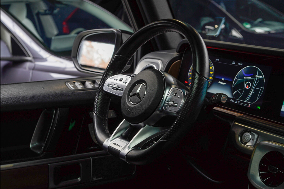 Mercedes-Benz G-Klasse BRABUS 800 Massage Burmester PTS 360° Camera Leer Navi Stoelventilatie Stoelverwarming voor en achter Climate voor & achter Memory seats Distronic Plus Elektr. bedienb. schuif-/ kanteldak PTS LM velgen