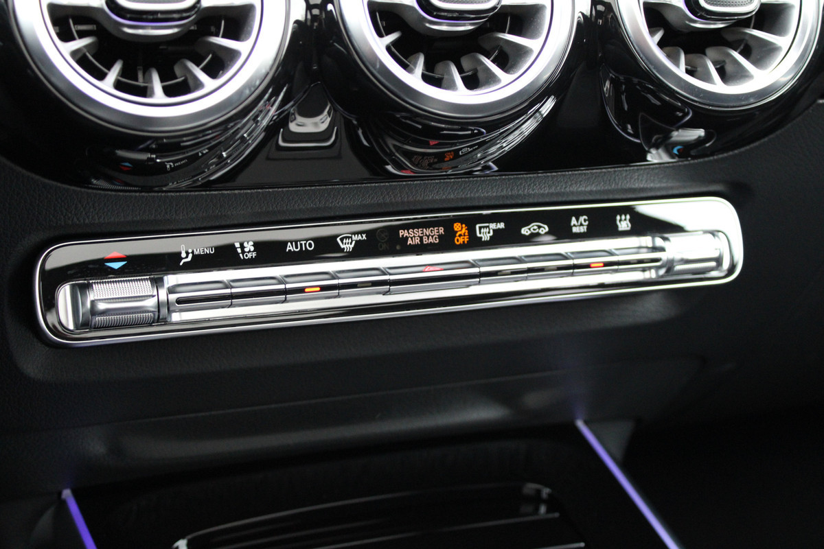 De achteruitrijcamera brengt precies in zicht wat zich achter u bevindt en toont een glashelder beeld op hoge resolutie. Een geluidssignaal waarschuwt hoeveel ruimte u nog heeft. Deze Mercedes-Benz GLA-klasse is 'connected'. Belangrijke functies worden permanent gemeten en zijn uit te lezen via een speciale app, ook op afstand. Het navigatiesysteem met harde schijf is uw vertrouwde gids, waarheen de reis ook gaat. Het spreekt voor zich dat een auto als deze ook van electronic climate control is voorzien. Nieuwe smartphones hebben geen snoeren meer nodig om op te laden. Daarom heeft deze Mercedes-Benz GLA-klasse een draadloze oplaadmogelijkheid voor telefoons waarmee u onderweg simpel en effectief voor een volle accu zorgt. De uitrusting van deze Mercedes-Benz is met schakelpaddles aan het stuur, DAB ontvangst, regensensor, cruise control, keyless entry en automatisch dimmende binnenspiegel behoorlijk compleet.