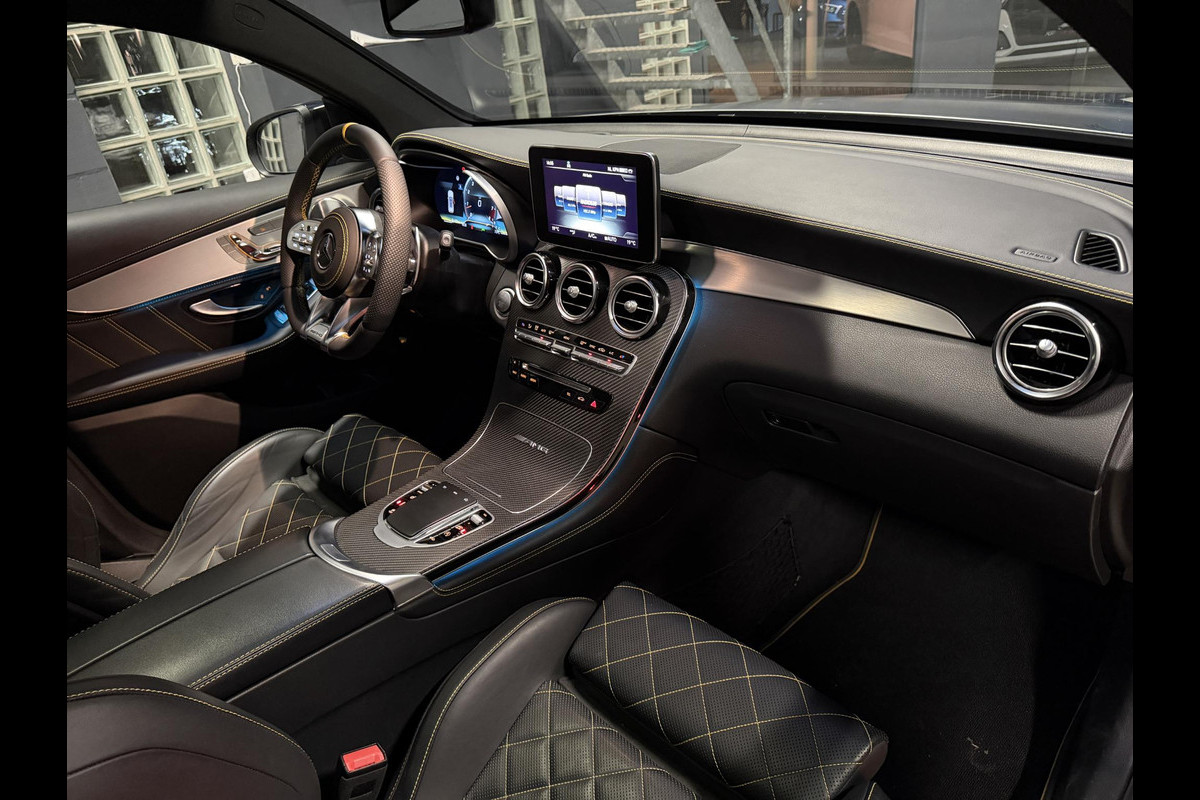 Nieuw binnen deze mega gave Mercedes-Benz GLC 63S AMG Coupe Edition 1 van 2020! Prachtige kleur samenstelling van het exterieur in de kleur Mountain Grey Magno (mat grijs) en het zwarte interieur met de gele Edition 1 accenten met carbon inleg!