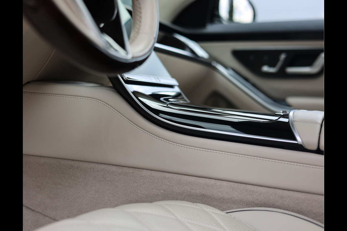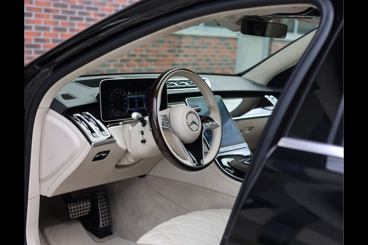 Qua uitstraling laat deze S-Klasse niets te wensen over. Het exterieur is uitgevoerd in Obsidiaanzwart metallic, een kleur die de elegante lijnen en statige proporties van de limousine extra kracht bijzet. In combinatie met het AMG-pakket en de 21 inch multispaaks velgen ontstaat een ingetogen, maar zelfverzekerde uitstraling. Het interieur vormt een stijlvol contrast met het Exclusive volleder in beige, dat een lichte en luxueuze ambiance creëert. De combinatie van kleuren, materialen en afwerking maakt elke rit een ervaring op zich, of u nu rijdt of gereden wordt.