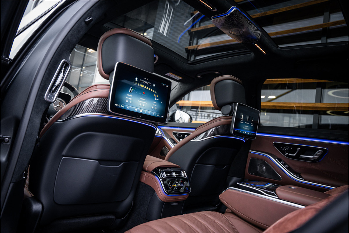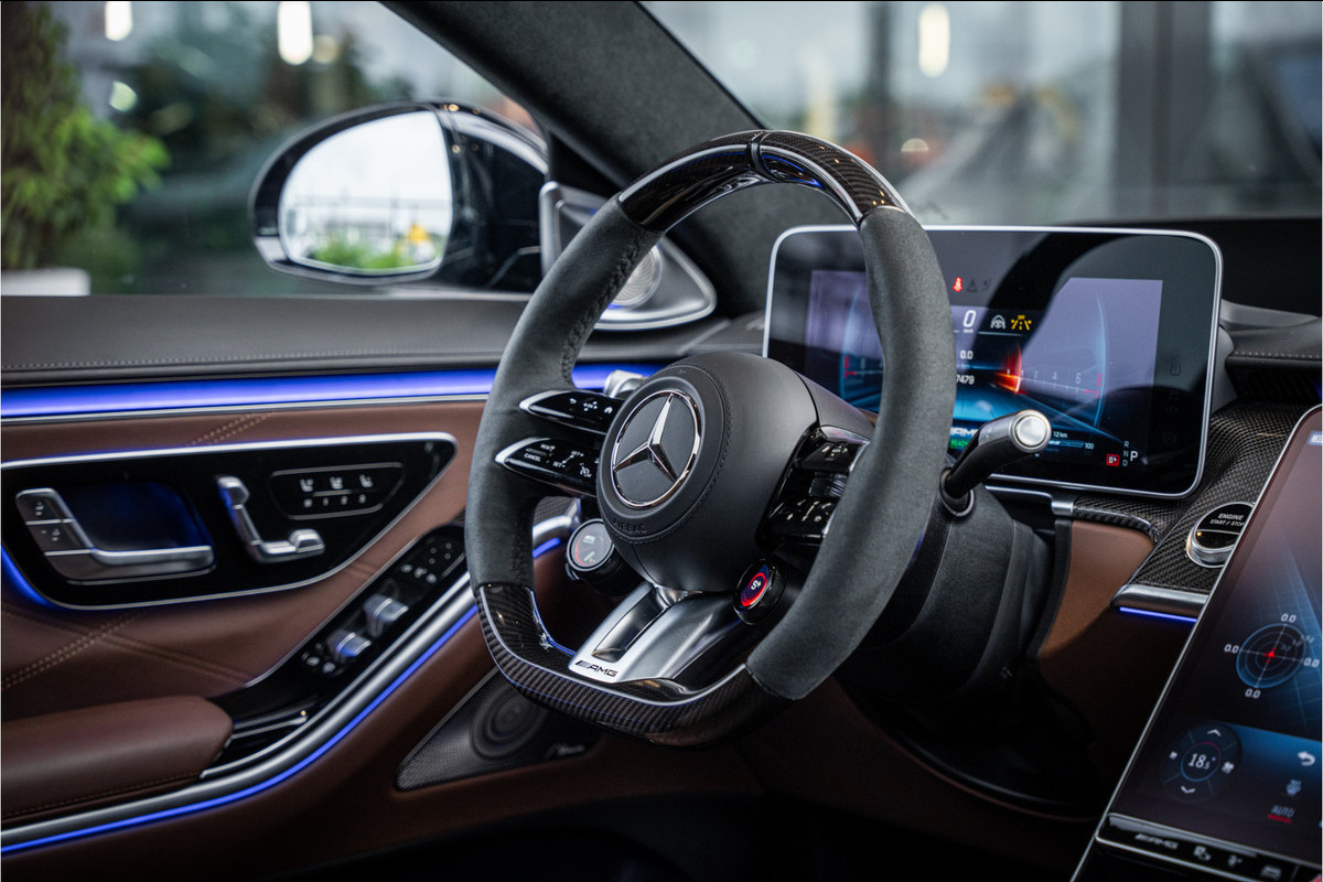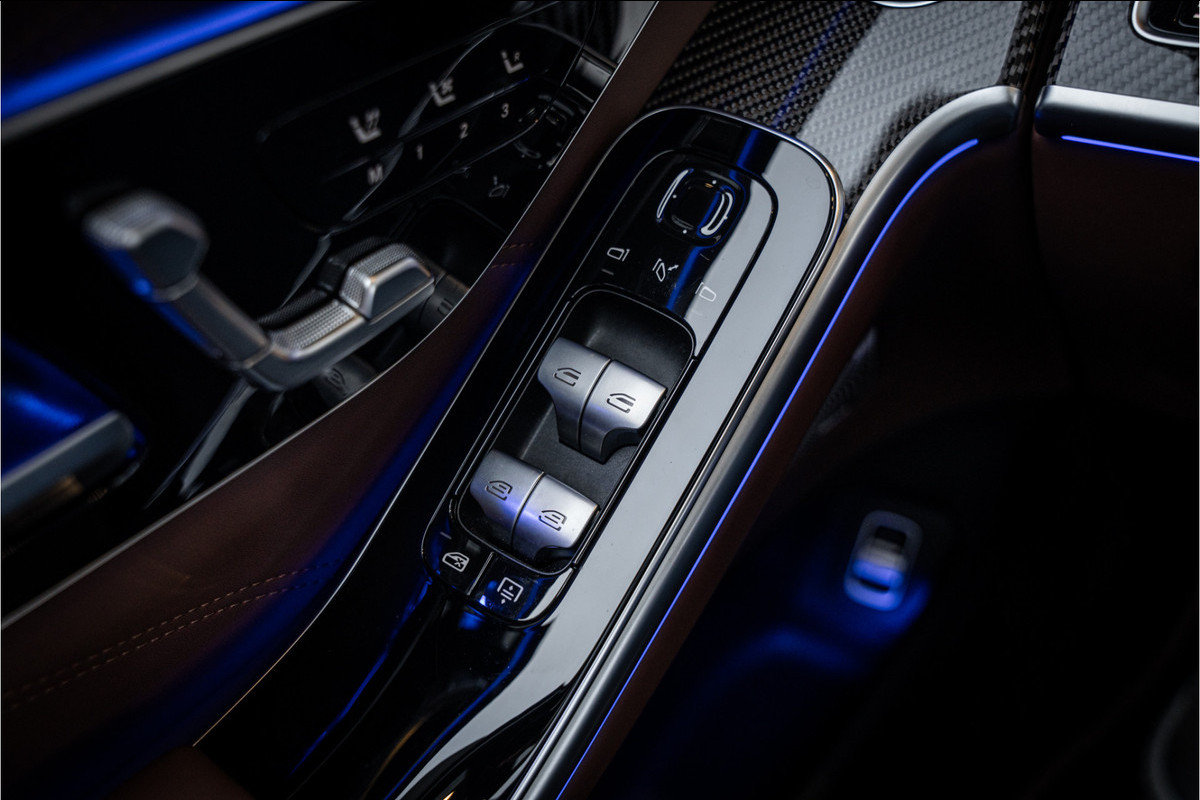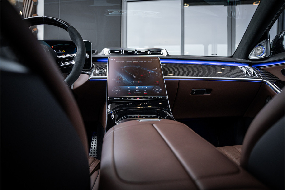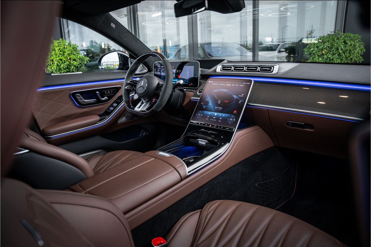 Binnenin ervaar je luxe in overtreffende trap: hoogwaardige materialen, geluidsisolatie, ambient lighting, comfortopties zoals massage, klimaatcontrole op de achterbank, hoogwaardige audio en talloze AMG-en Manufaktur-details die verraden dat dit geen standaard S-klasse is, maar een exclusieve uitvoering voor wie echt het allerbeste wil.