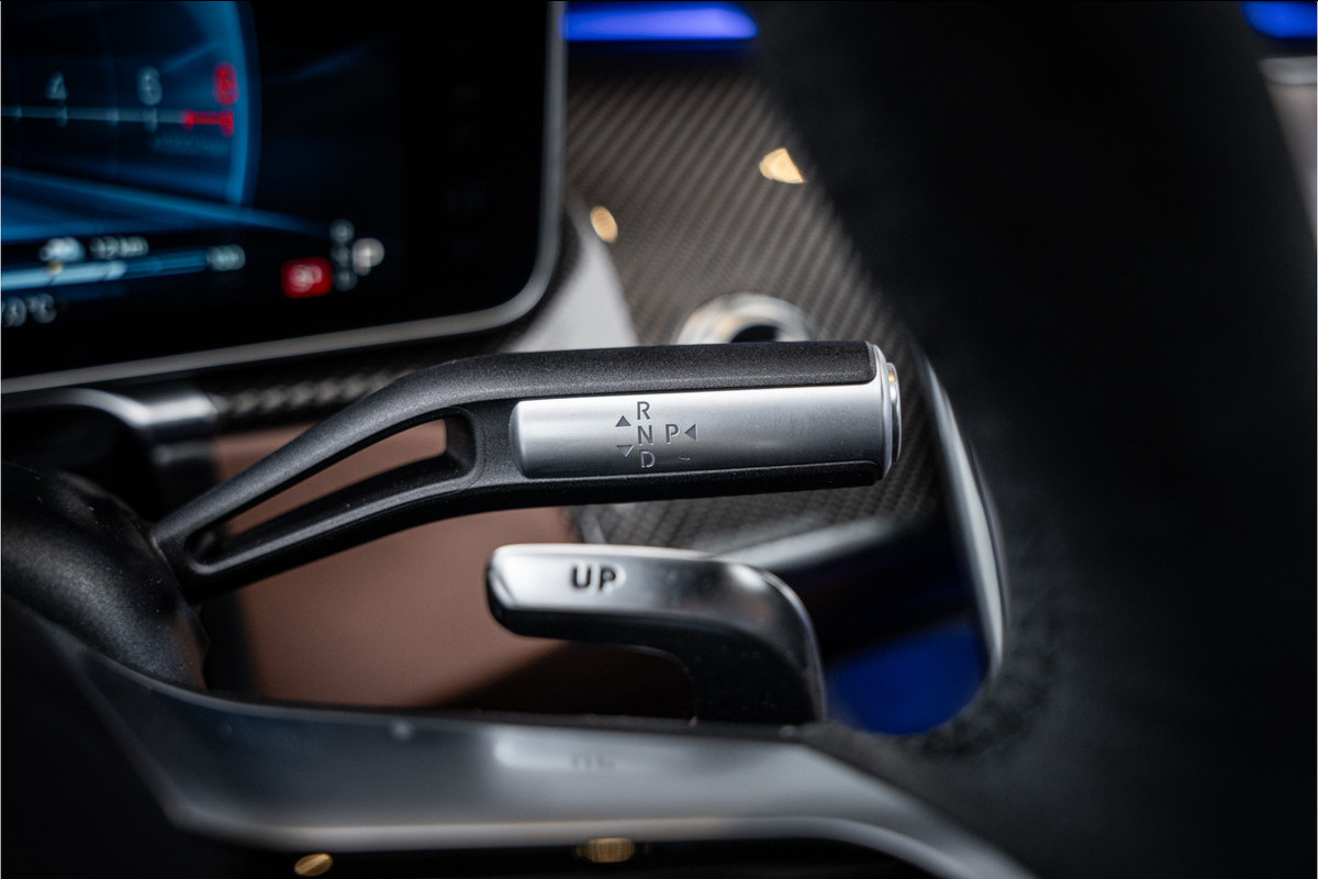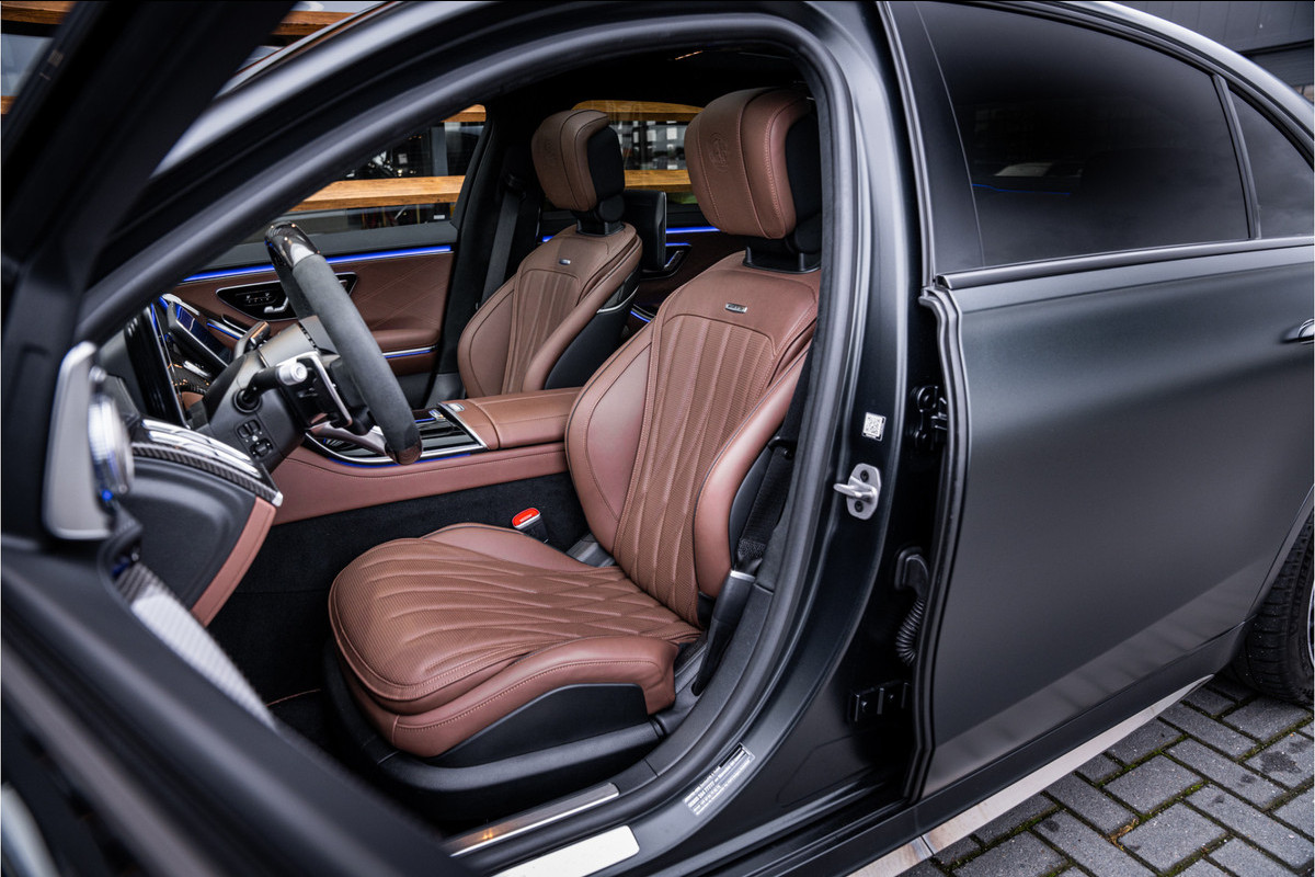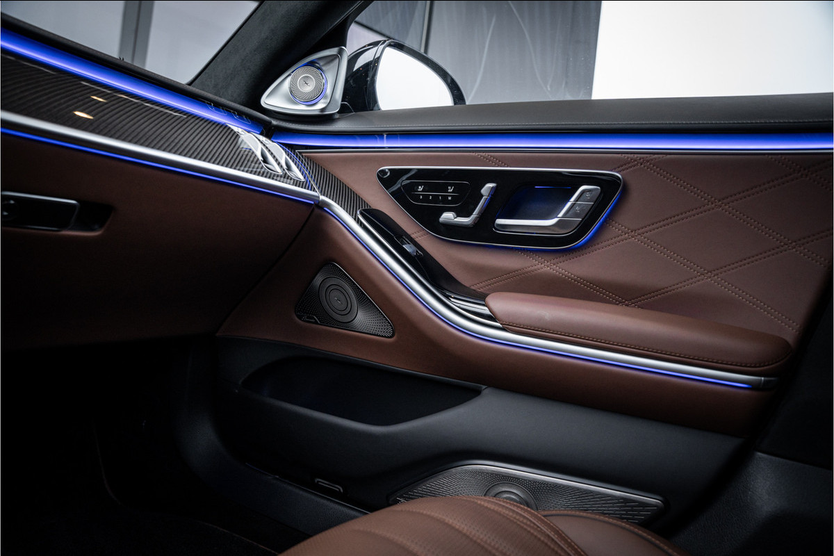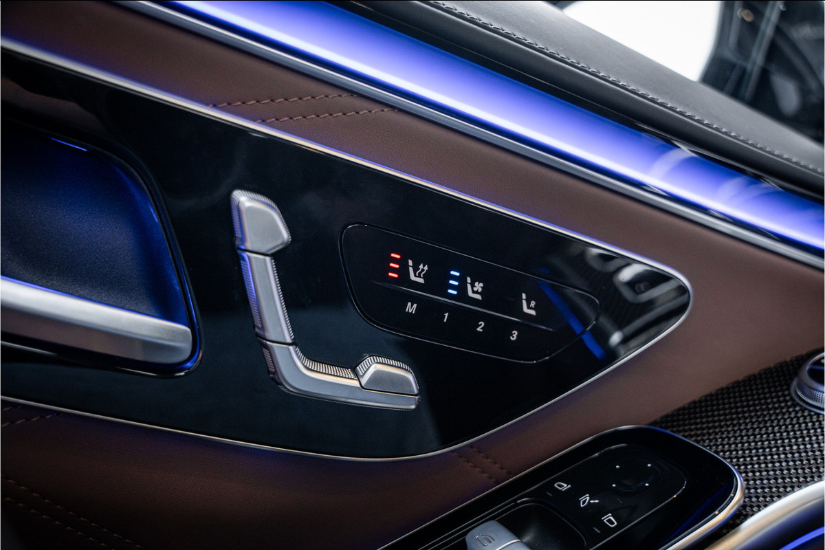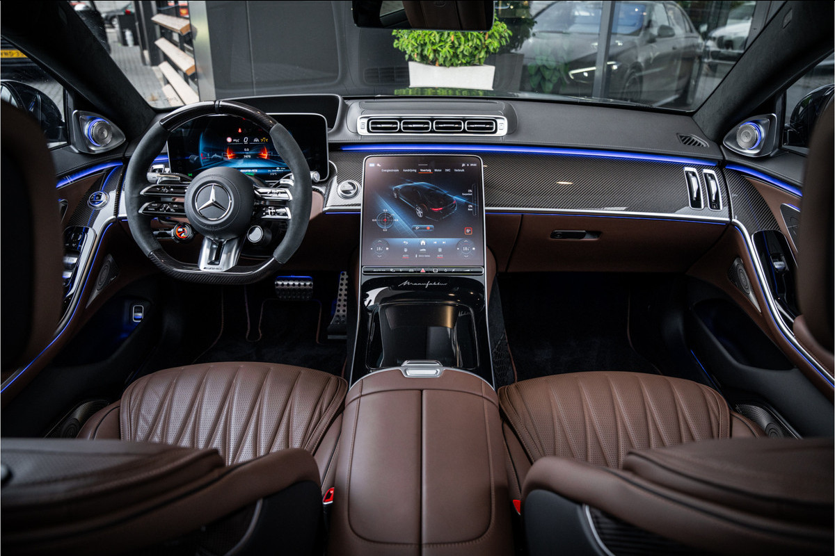 Binnenin ervaar je luxe in overtreffende trap: hoogwaardige materialen, geluidsisolatie, ambient lighting, comfortopties zoals massage, klimaatcontrole op de achterbank, hoogwaardige audio en talloze AMG-en Manufaktur-details die verraden dat dit geen standaard S-klasse is, maar een exclusieve uitvoering voor wie echt het allerbeste wil.