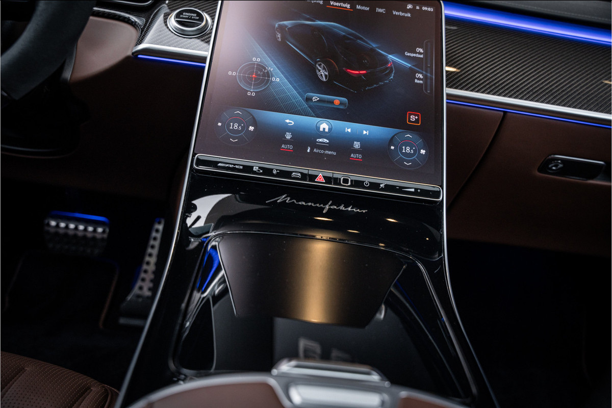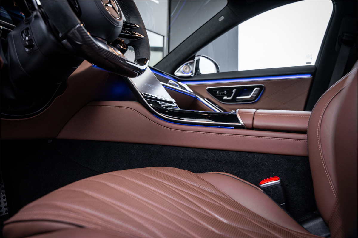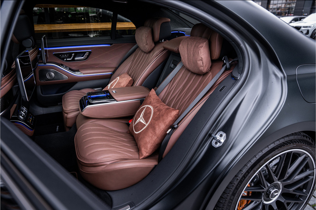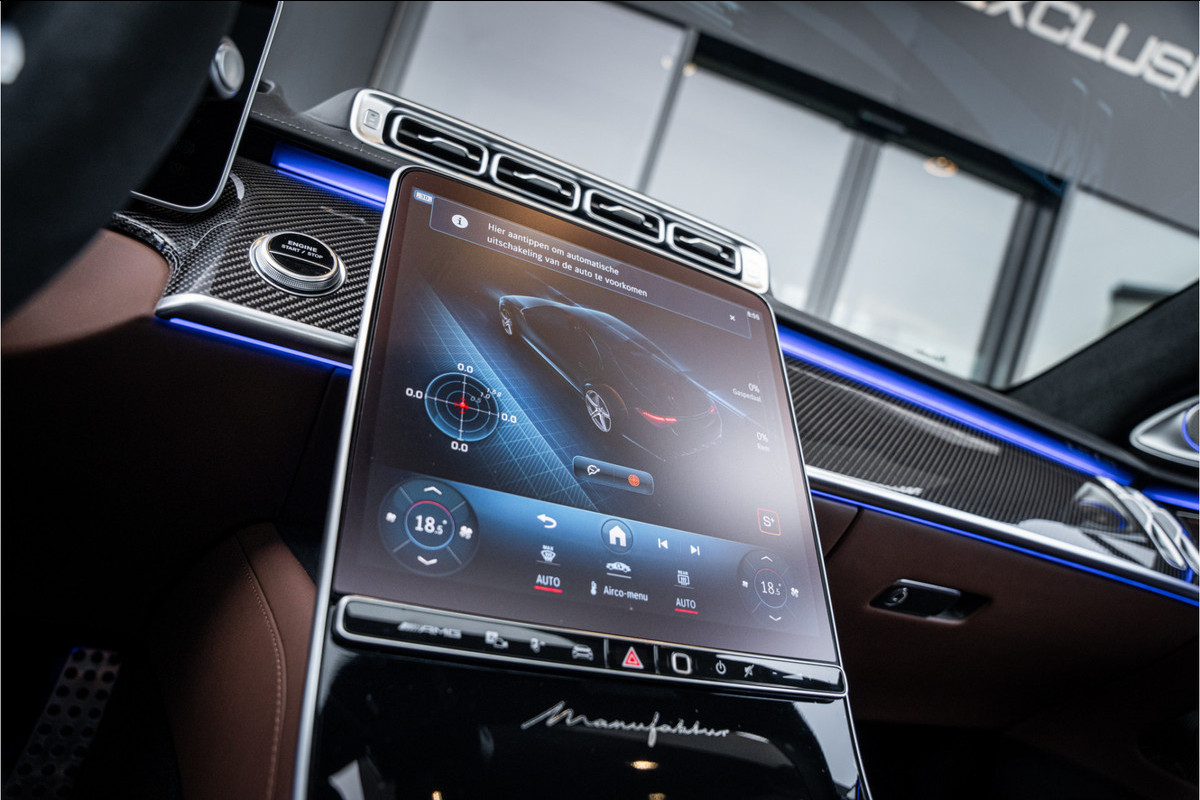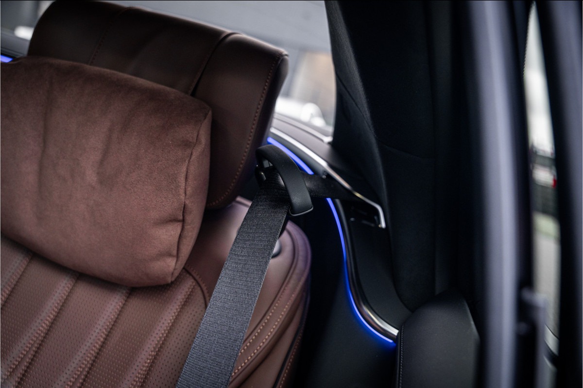 Binnenin ervaar je luxe in overtreffende trap: hoogwaardige materialen, geluidsisolatie, ambient lighting, comfortopties zoals massage, klimaatcontrole op de achterbank, hoogwaardige audio en talloze AMG-en Manufaktur-details die verraden dat dit geen standaard S-klasse is, maar een exclusieve uitvoering voor wie echt het allerbeste wil.