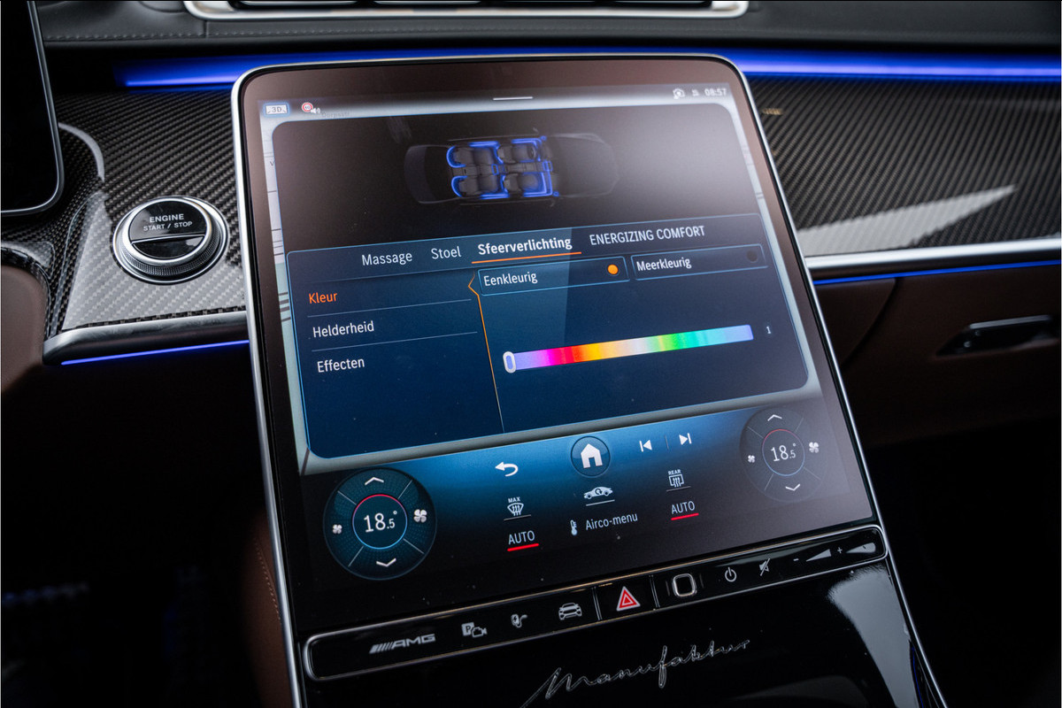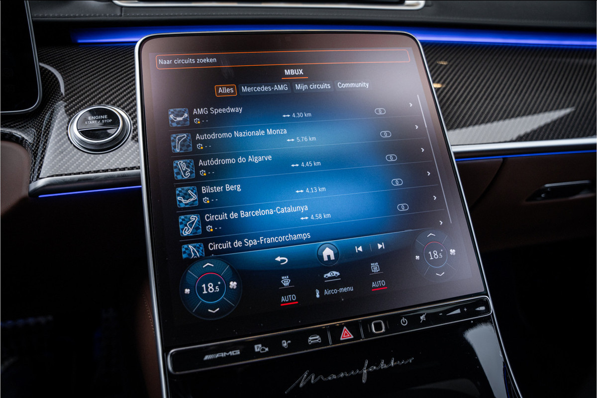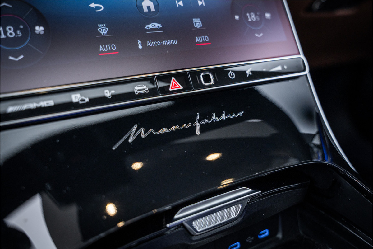 Het Manufaktur-pakket voegt extra allure toe: buiten-gewone exterieur kleuren en een keur van exclusieve interieurcombinaties met Nappa-leder en handgestikte details. Elk stuk interieur is met zorg afgewerkt, voorzien van AMG & Manufaktur-logo’s, en een stuurwiel dat met de hand gestikt is.